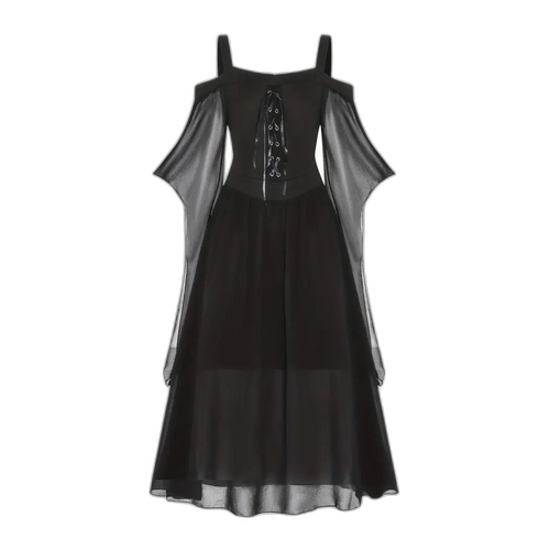 Gothic Witch Cosplay Dress - Women's with Retro Mesh Design Black / XXL(14)