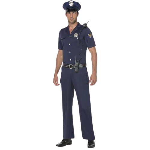 Men's Police Cosplay costume Blue, Small Pants Shirt Hat Belt & Badges