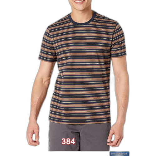 Men's Slim-Fit Short-Sleeve Cotton Crewneck T-Shirt Blue/Tan Stripe Large Tall