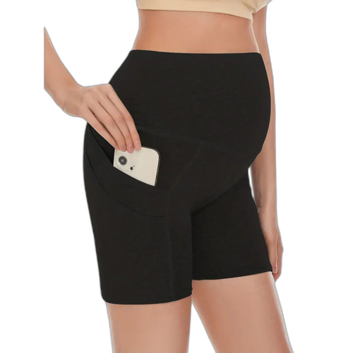 Maternity Solid High Waist Shorts Slim Fit Elastic Shorts Pregnant Black Medium
