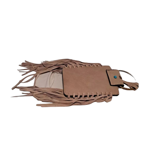 MUDD Tan Fringe Crossbody Phone Bag Boho Western Faux Turquoise Pre-owned