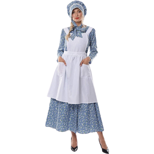 Pioneer Prairie Colonial Costume Trek Dress, Navy Blue-suit, Medium