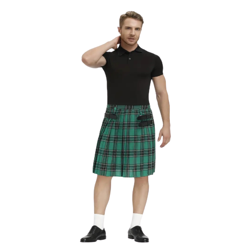 Plaid Pleated Skirt Scottish Short Skirt Traditional Kilt Green / XL(36)