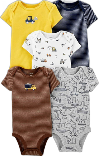 Carter's Baby Boys 5 Pack Bodysuit Set, Construction, 6 Months