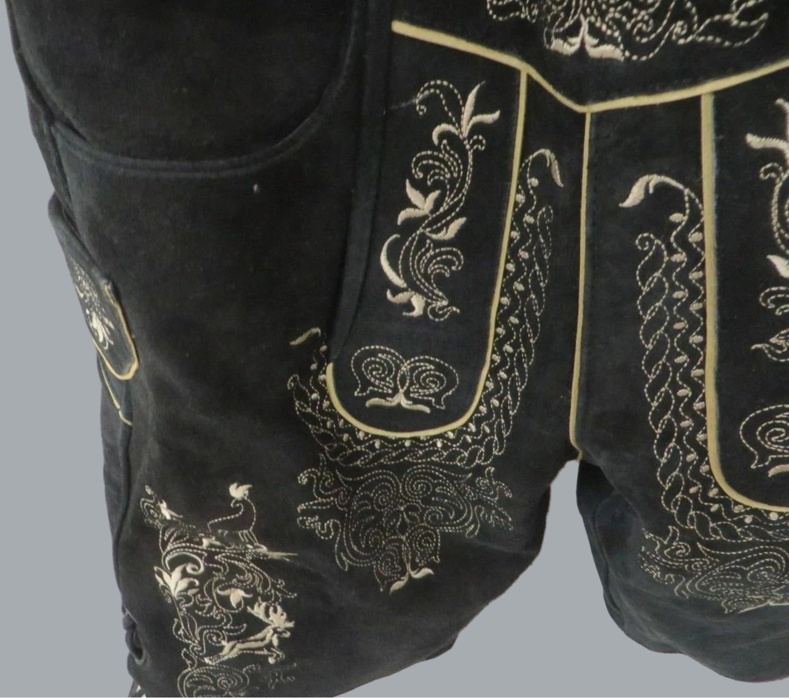 Black Leather German Lederhosen Shorts Embroidered Bavarian Suspenders 32