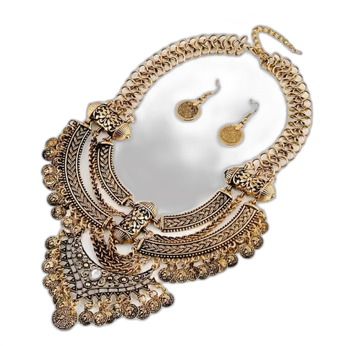 Crescent Moon Tassel Thick Chain Short Collarbone Necklace & Earrings Zinc Alloy
