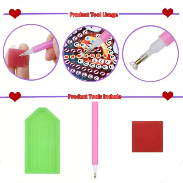 The kit comes with a diamond painting tool that allows you to complete 10 coasters. Find the rhinestones you need according to the numbers/letters on the coaster (the corresponding numbers/letters are marked on the bag) and start making.
