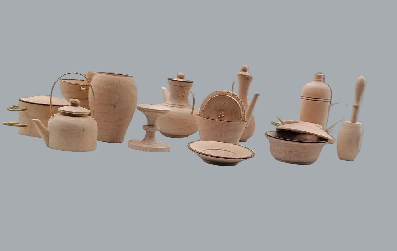 12 Mini Wooden Kitchen Utensils Set Dollhouse Craft Unfinished Wood Decor