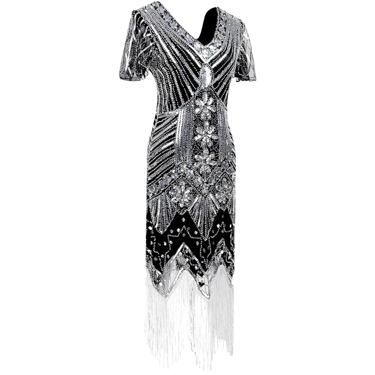 Vintage 1920's Style Flapper Costume, The design With Short sleeves to help lift shoulder and Make full body look slimmer.