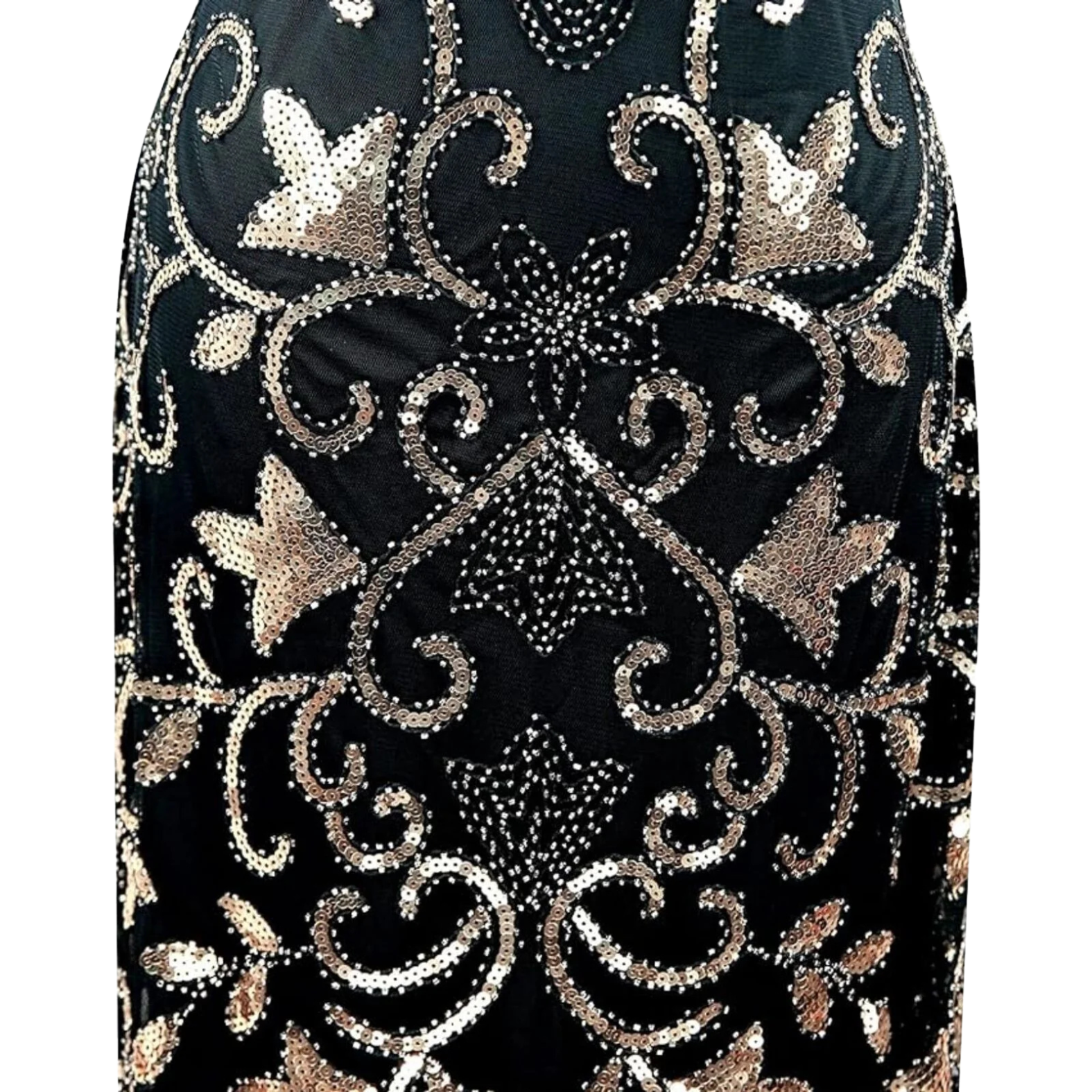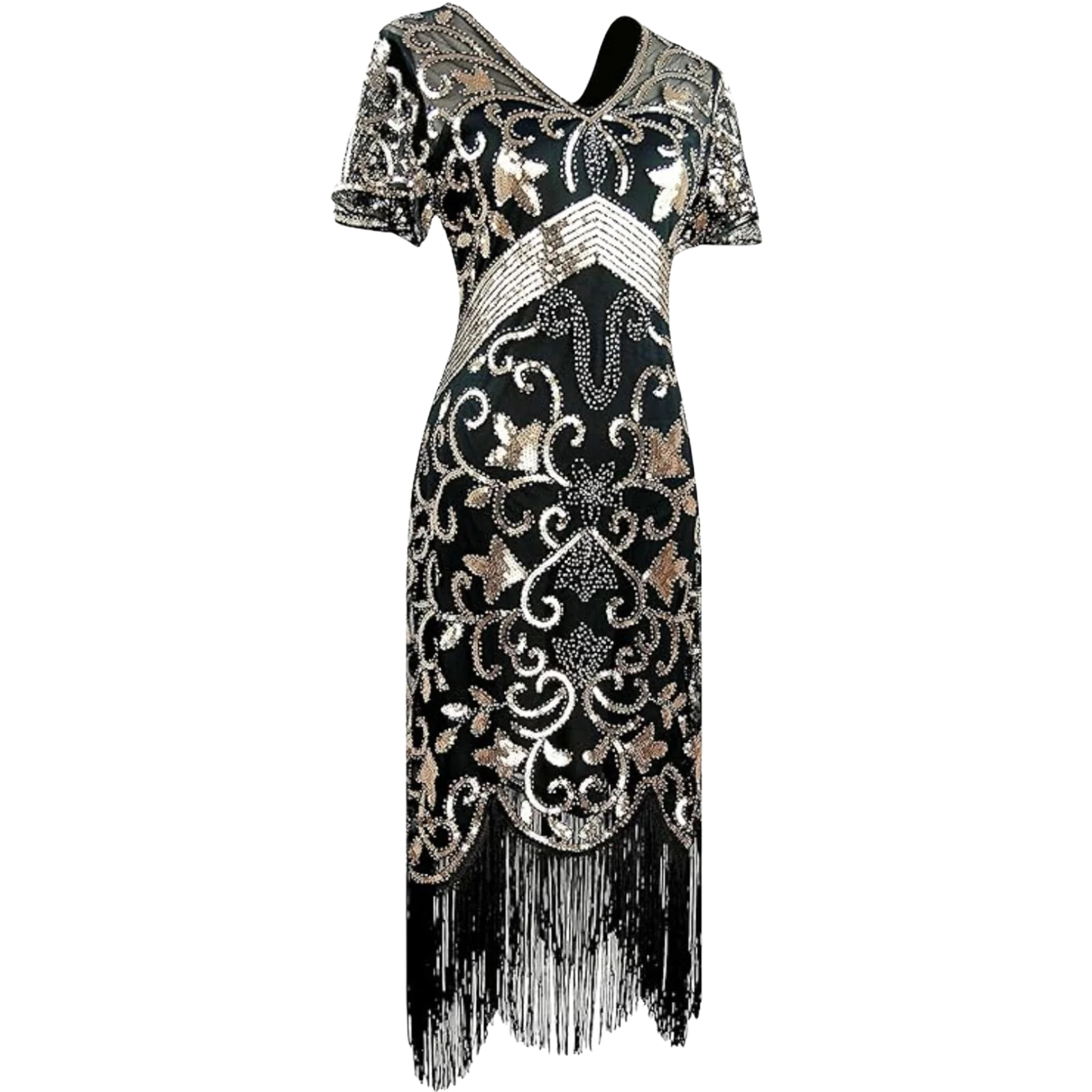 1920s Sequins Gatsby Cocktail Flapper Dresses Medium Black Silver