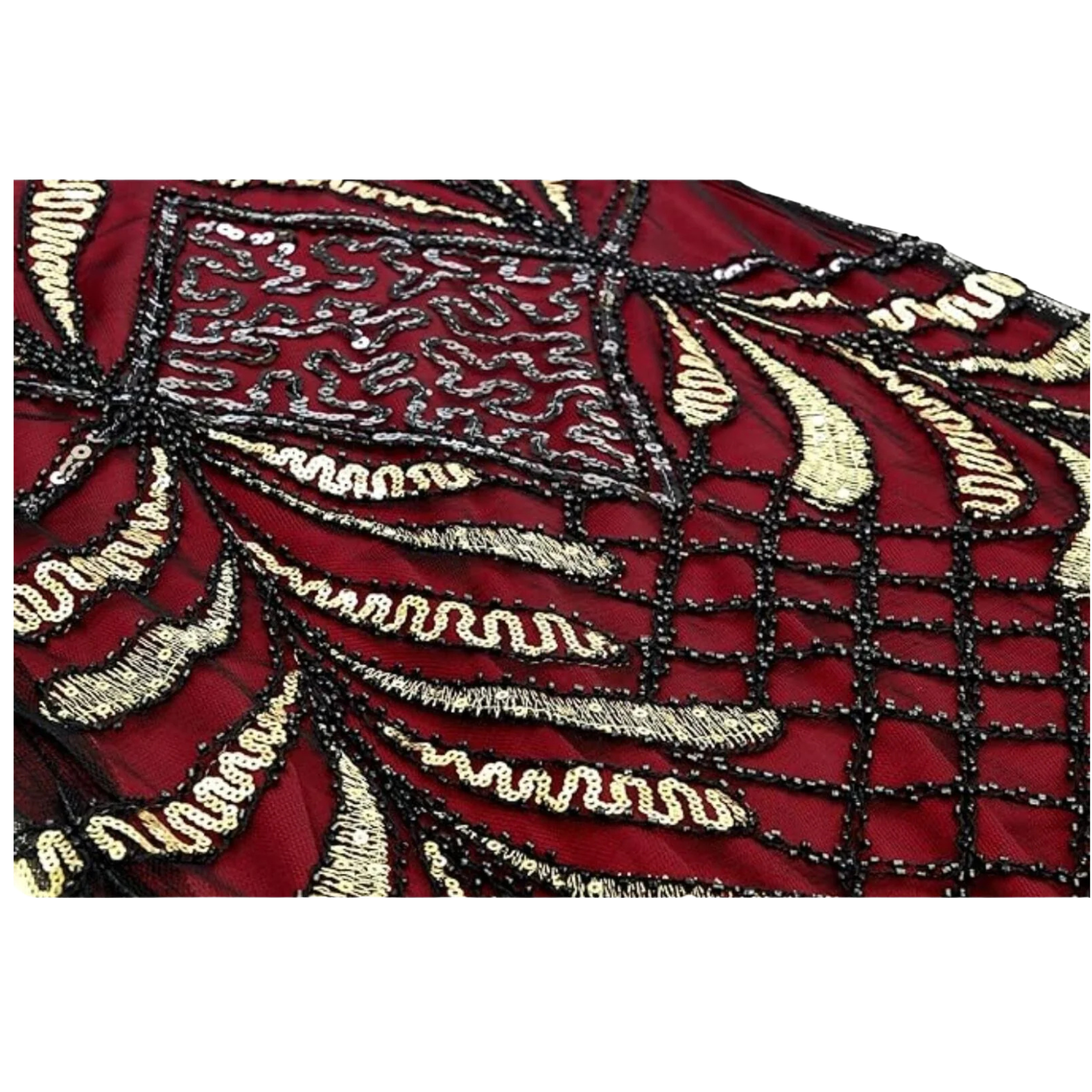 1920s Sequins Gatsby Flapper Dress 20s Headband Accessories Set Large Black Red