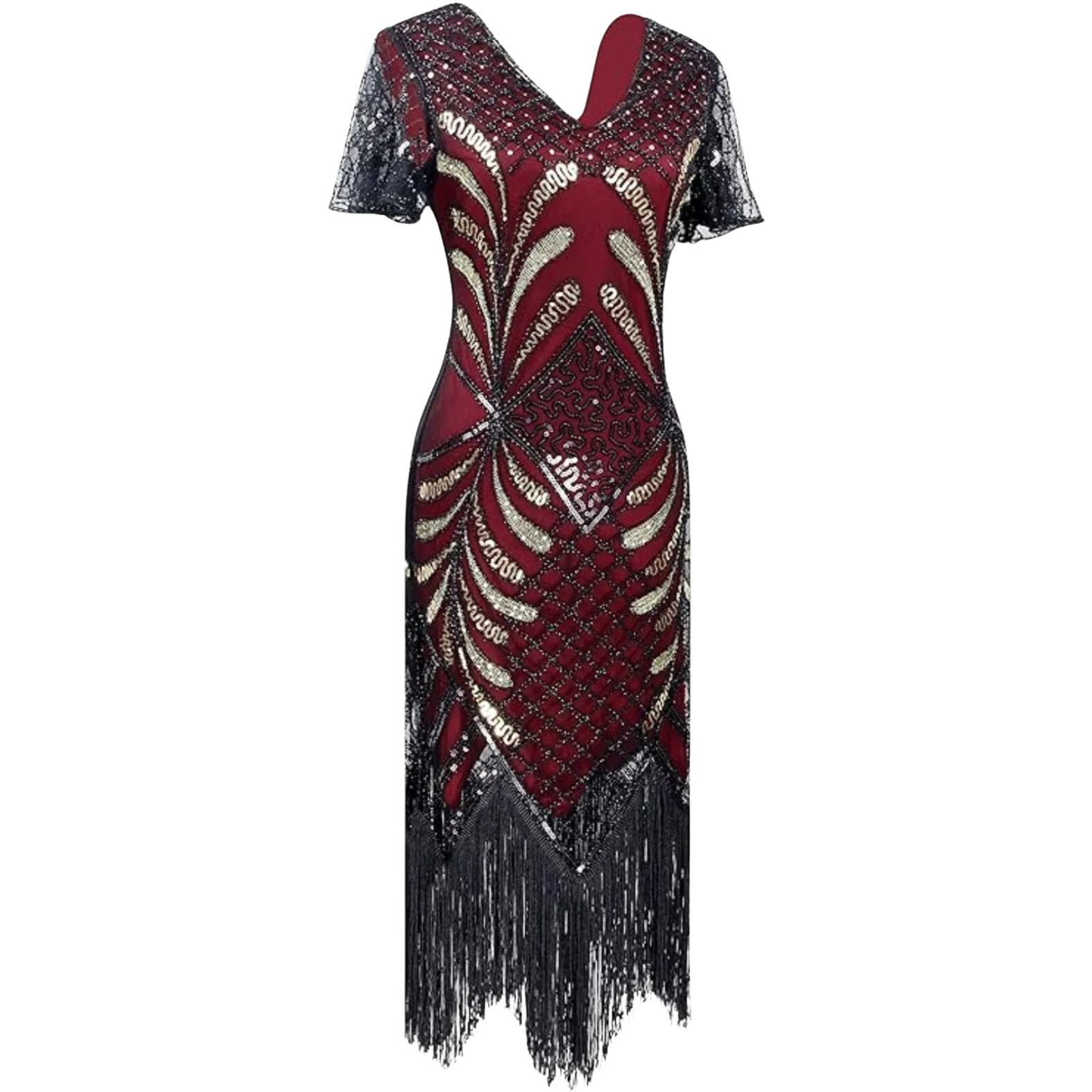 Vintage 1920's Style Flapper Costume, The design With Short sleeves to help lift shoulder and Make full body look slimmer.