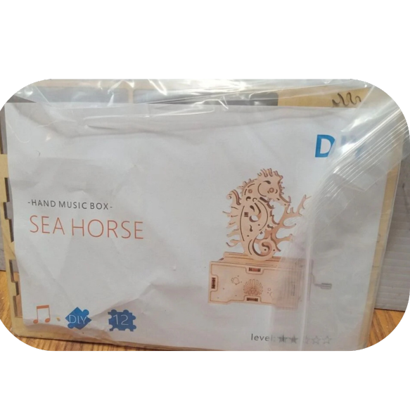 3D Puzzle Seahorse Wooden Crank Music Box Assembly Toy DIY Mode Assembled Model Stem Toys Kit Perfect Gift
