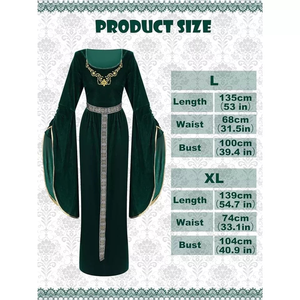 Step into a world of elegance with this **4 Pcs Medieval Women Princess Dress** set, perfect for renaissance fairs, cosplay events, or themed parties. This enchanting costume features a beautifully designed long dress with trumpet sleeves, evoking the charm of the Renaissance era. The adjustable waistband at the back ensures a comfortable and flattering fit for various body types.