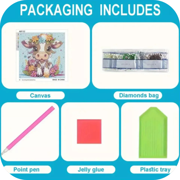 Packing includes all diamonds and tools, so there is no need to buy any additional tools. Each diamond painting bag adds an extra 30% percent of diamonds for you, so you don't have to worry about the lack of diamonds.