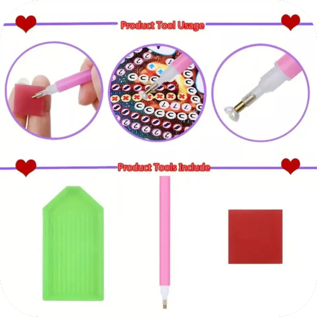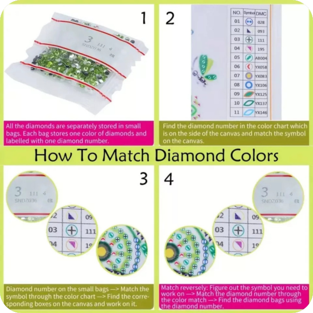 The kit comes with a diamond painting tool that allows you to complete 8 coasters. Find the rhinestones you need according to the numbers/letters on the coaster (the corresponding numbers/letters are marked on the bag) and start making.