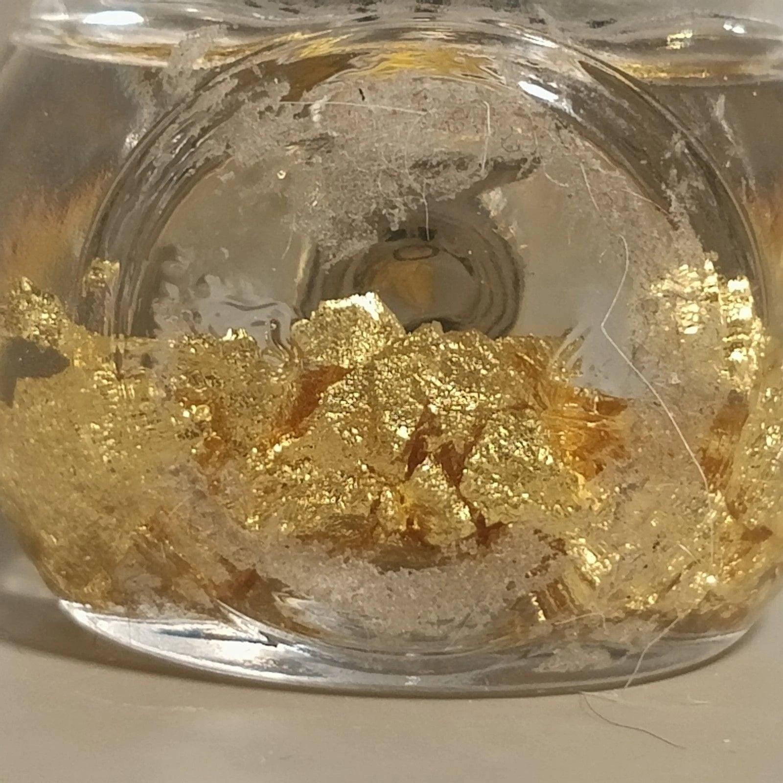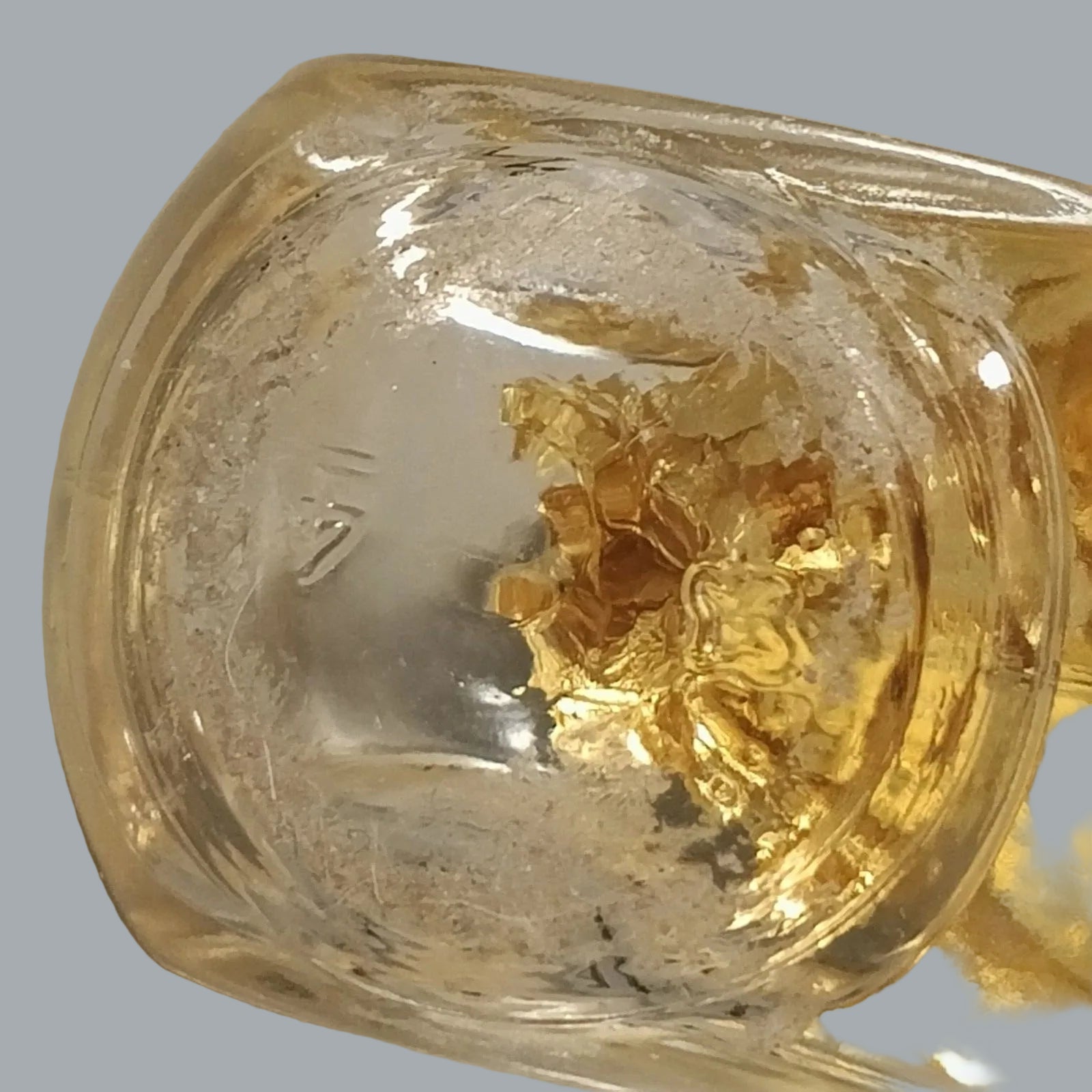 Tiny Alaska/Yukon souvenir bottle featuring decorative 23K gold flakes in clear liquid.