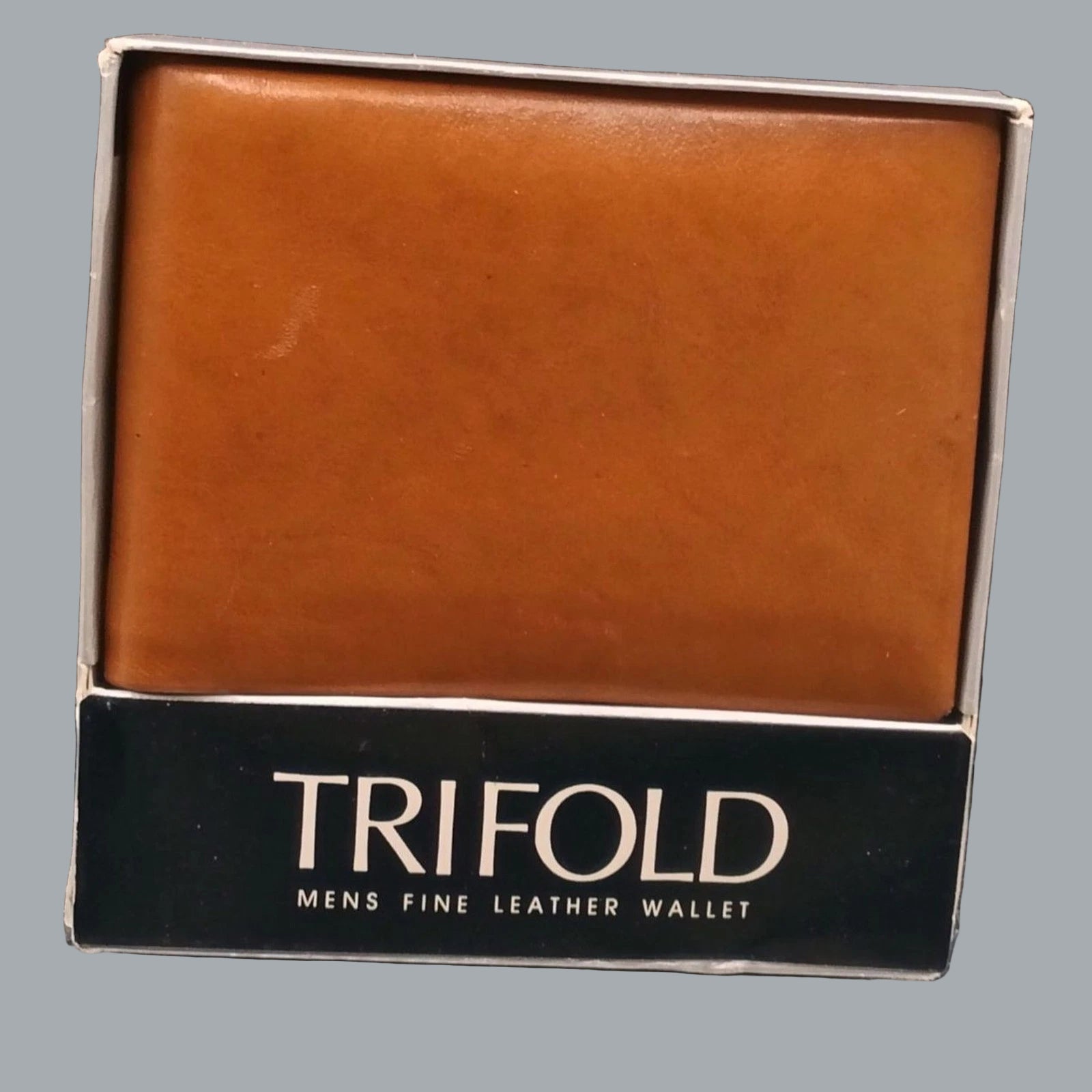 American Accessories Tan Brown Leather Trifold Mens Wallet NIB Vintage