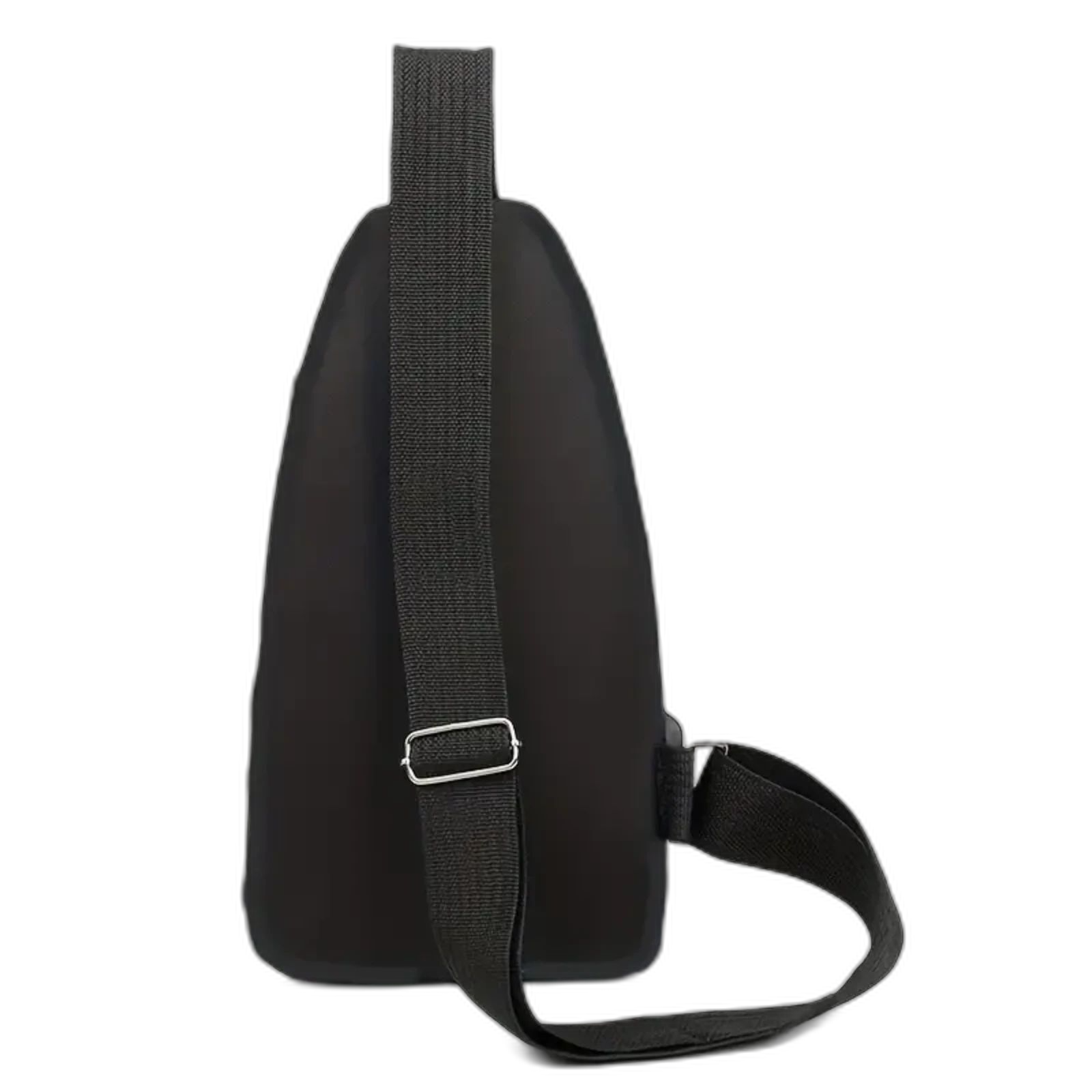 Black Nylon Leisure Sports Travel Chest Bag, Zipper Closure With Headphone Port