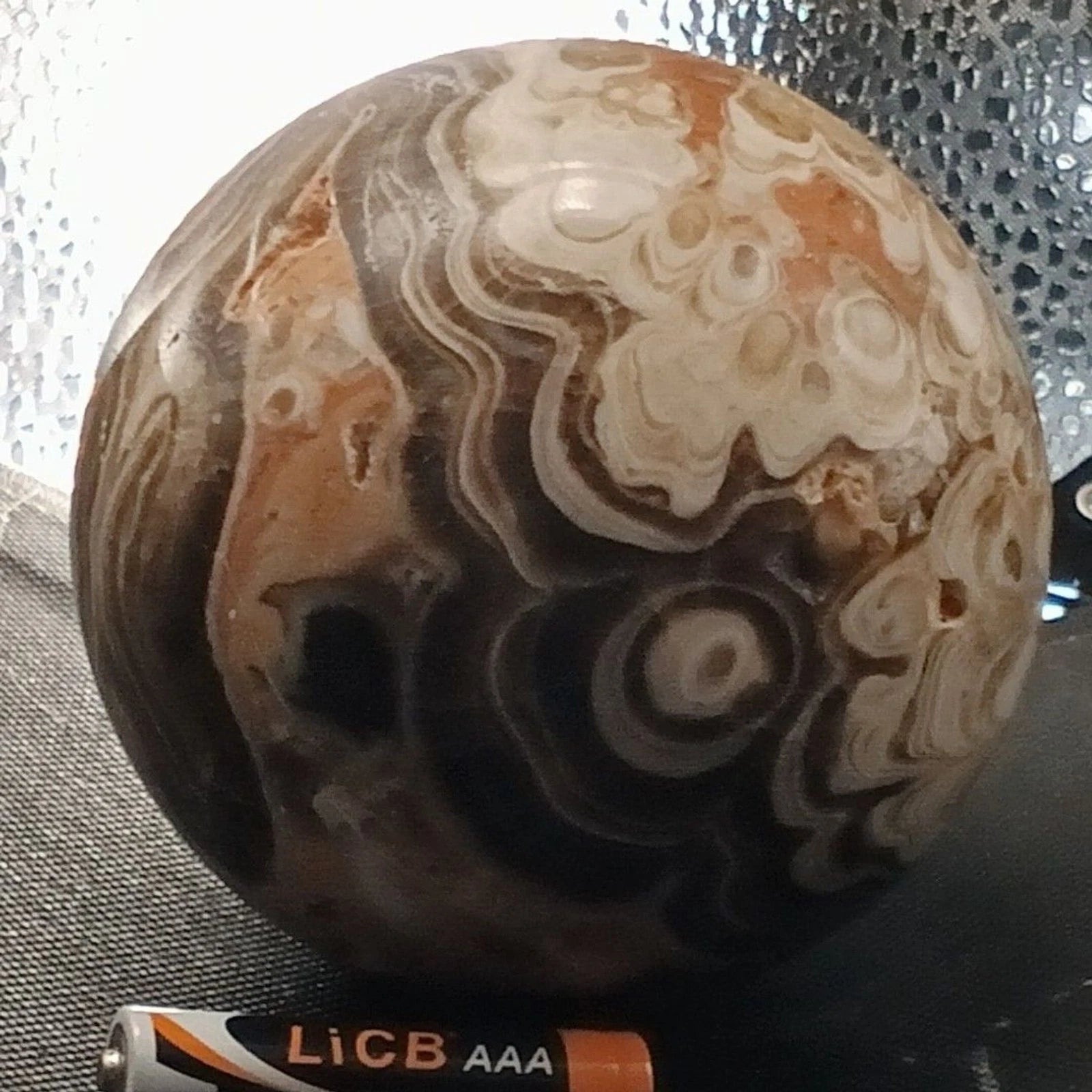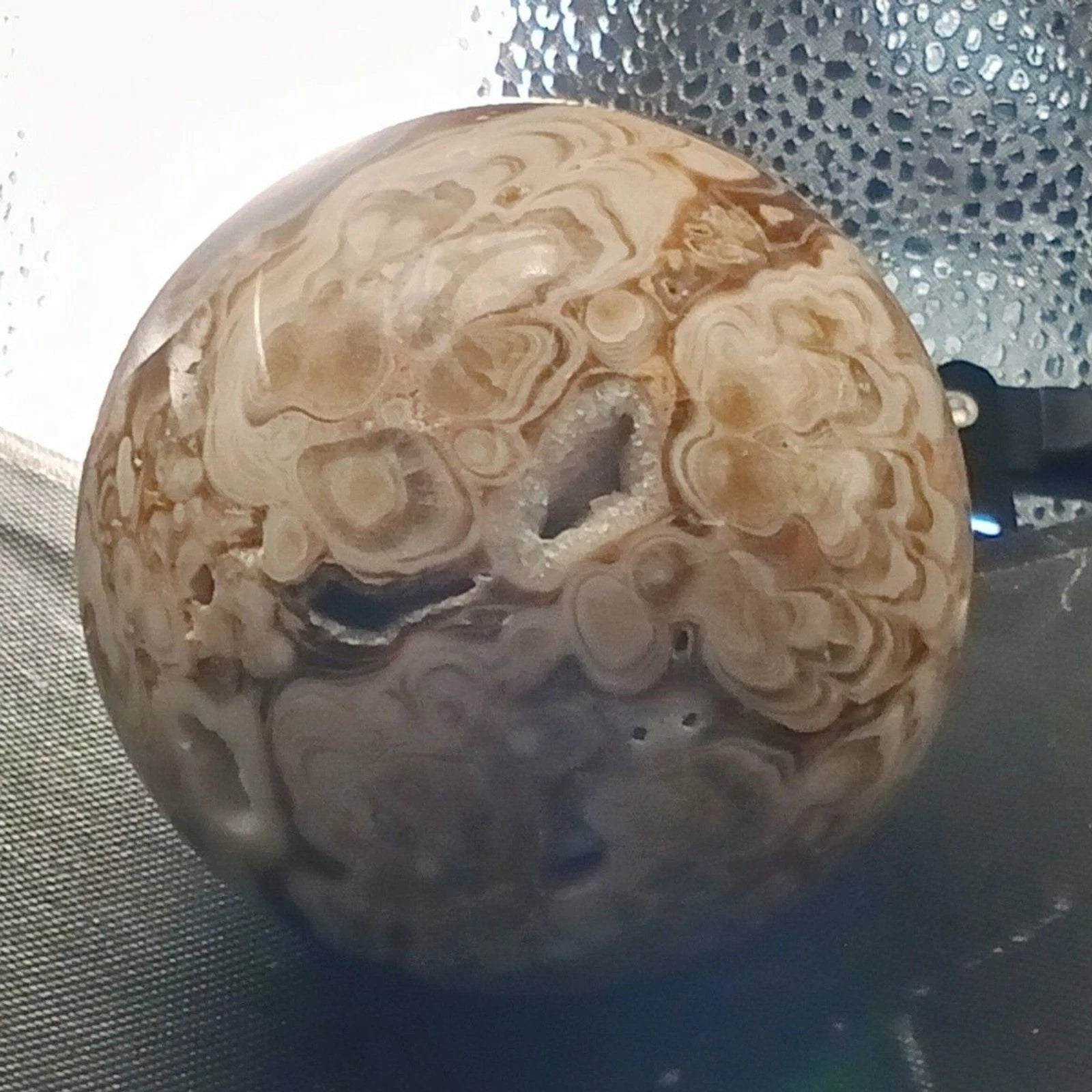 Brown Cream Orbicular Ocean Jasper Druzy Geode Sphere Crystal Reiki Madagascar