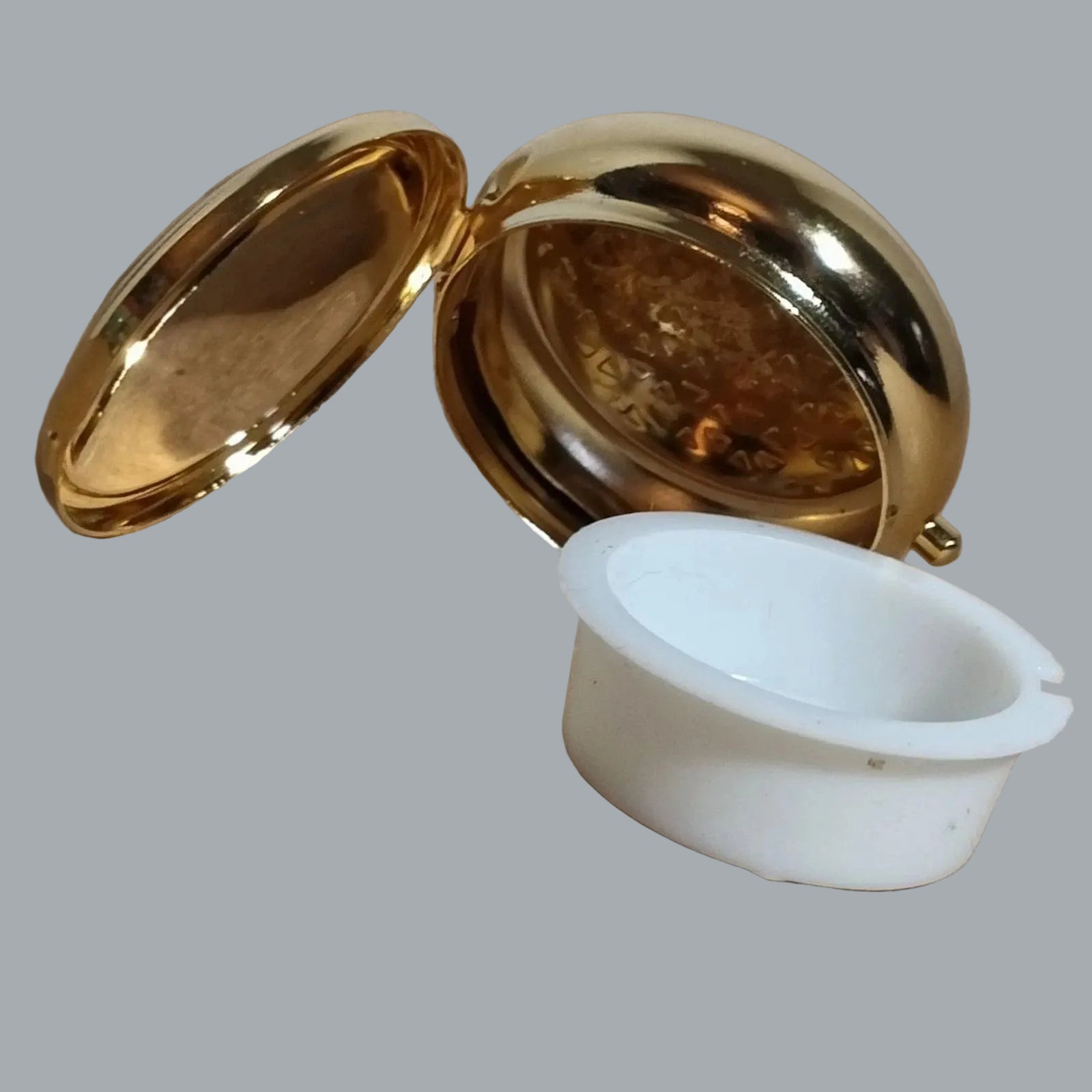 Includes: removable white plastic insert cup (useful for small items/balm/pills)