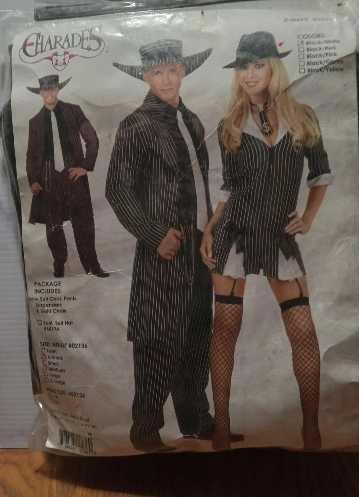 Charades Men's Zoot Suit with Chain, Black/White, X-Small