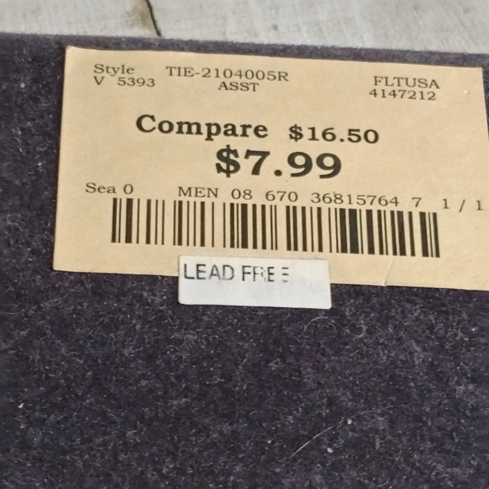 “Lead Free” noted on price tag