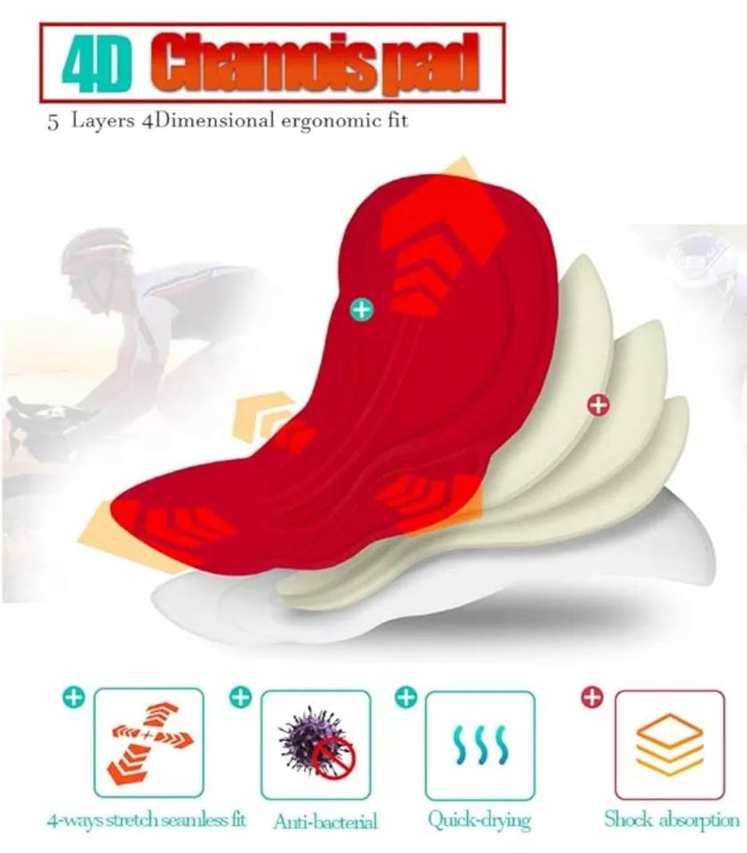 Introducing the Men's Cycling Pants 4D Padded Bike Bicycle Biking Tights in size XXL. Featuring a 5-layer 4-dimensional design, these pants fit snugly around your saddle area, reducing abrasion, absorbing shock, and enhancing comfort. Made of 90% polyester and 10% spandex, they offer high moisture-wicking, breathability, and super elasticity, ideal for long-distance riding. Reflective strips on both sides of the calf enhance visibility in low-light conditions, ensuring safety. The leg openings have an antiskid design, while the high-stretch fabric provides excellent abrasion resistance, compression, and muscle support, reducing fatigue and allowing maximum freedom of movement.