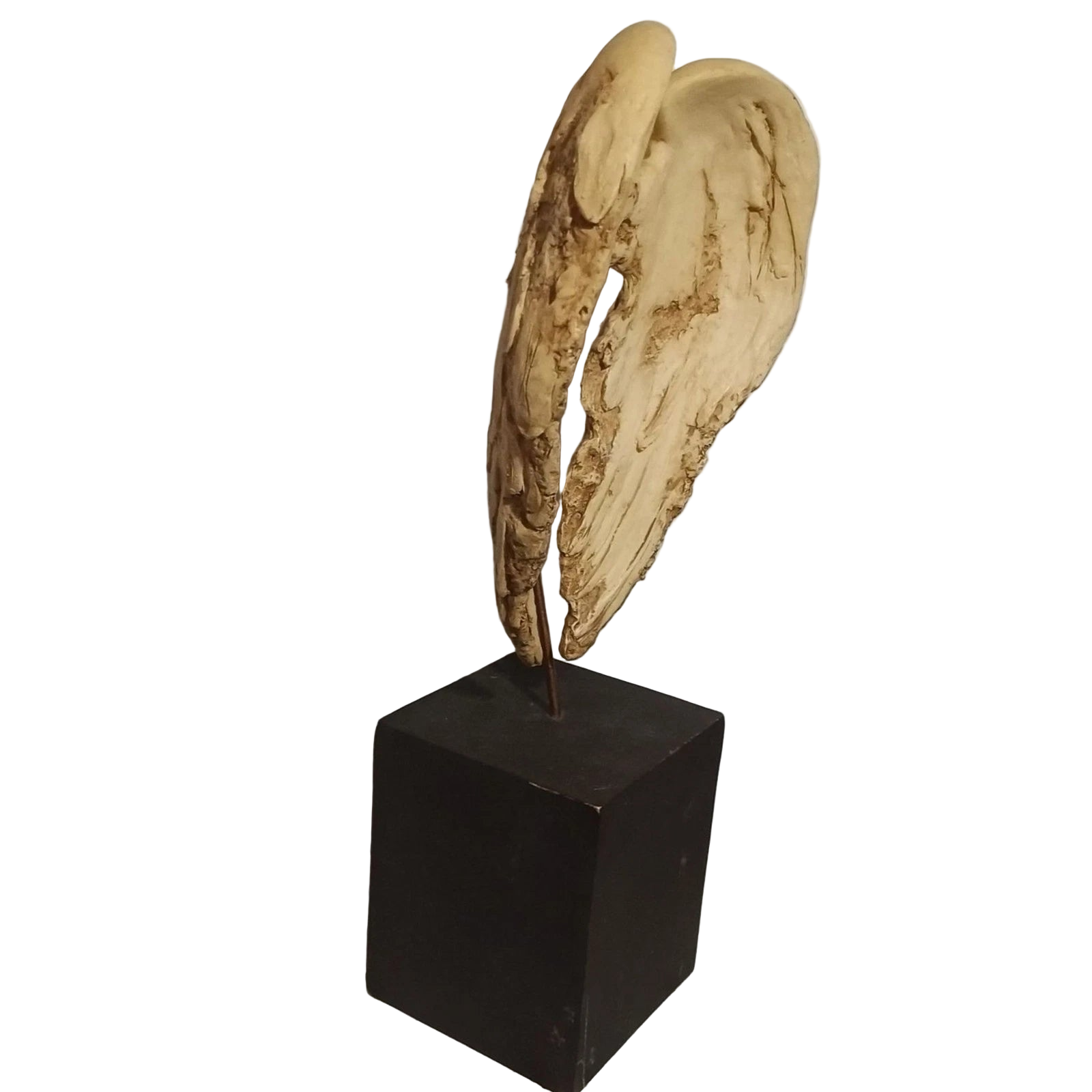 Detailed sculpted angel wings in distressed cream finish