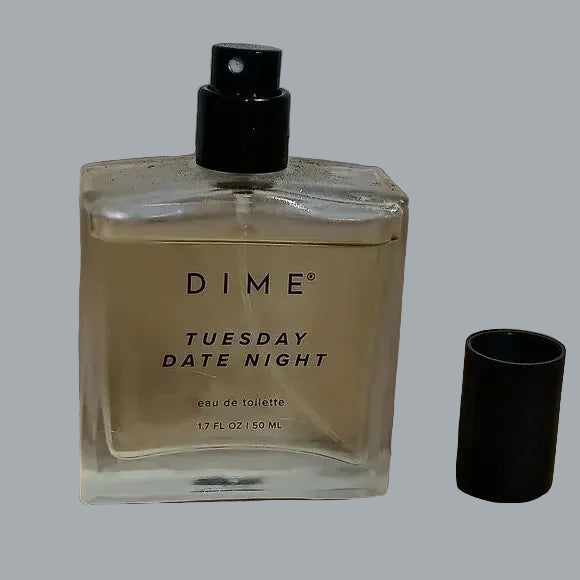 Clean, cozy DIME Tuesday Date Night EDT with a warm woodsy-musky vibe. About 90% full (1.7 oz / 50 mL bottle).