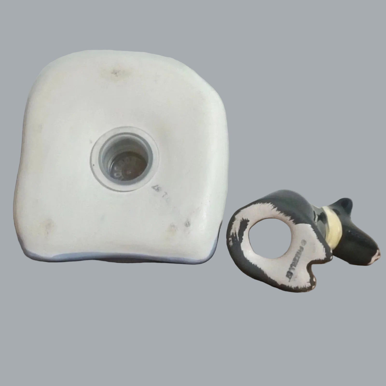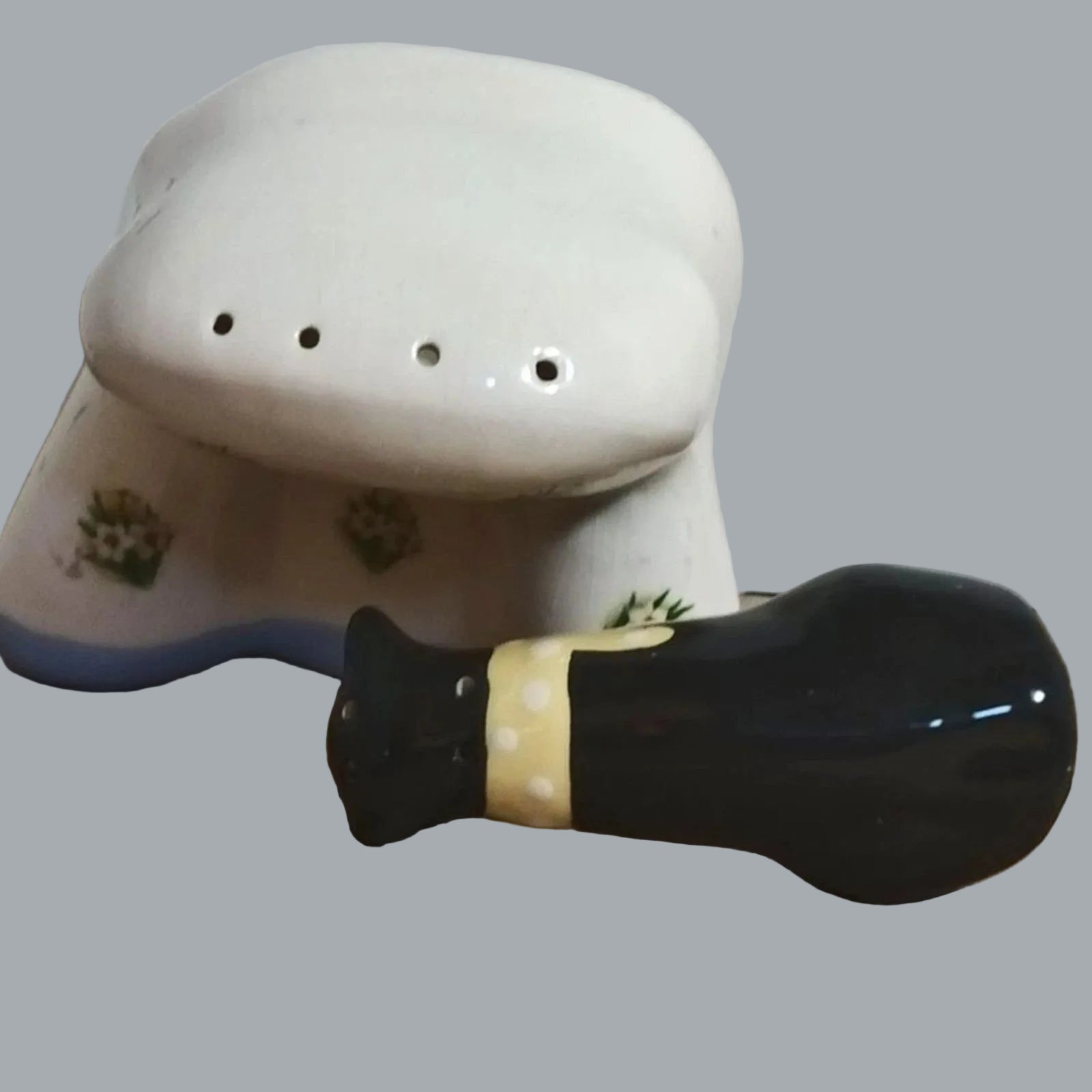 Two-piece ceramic set: couch shaker and matching removable dog shaker
