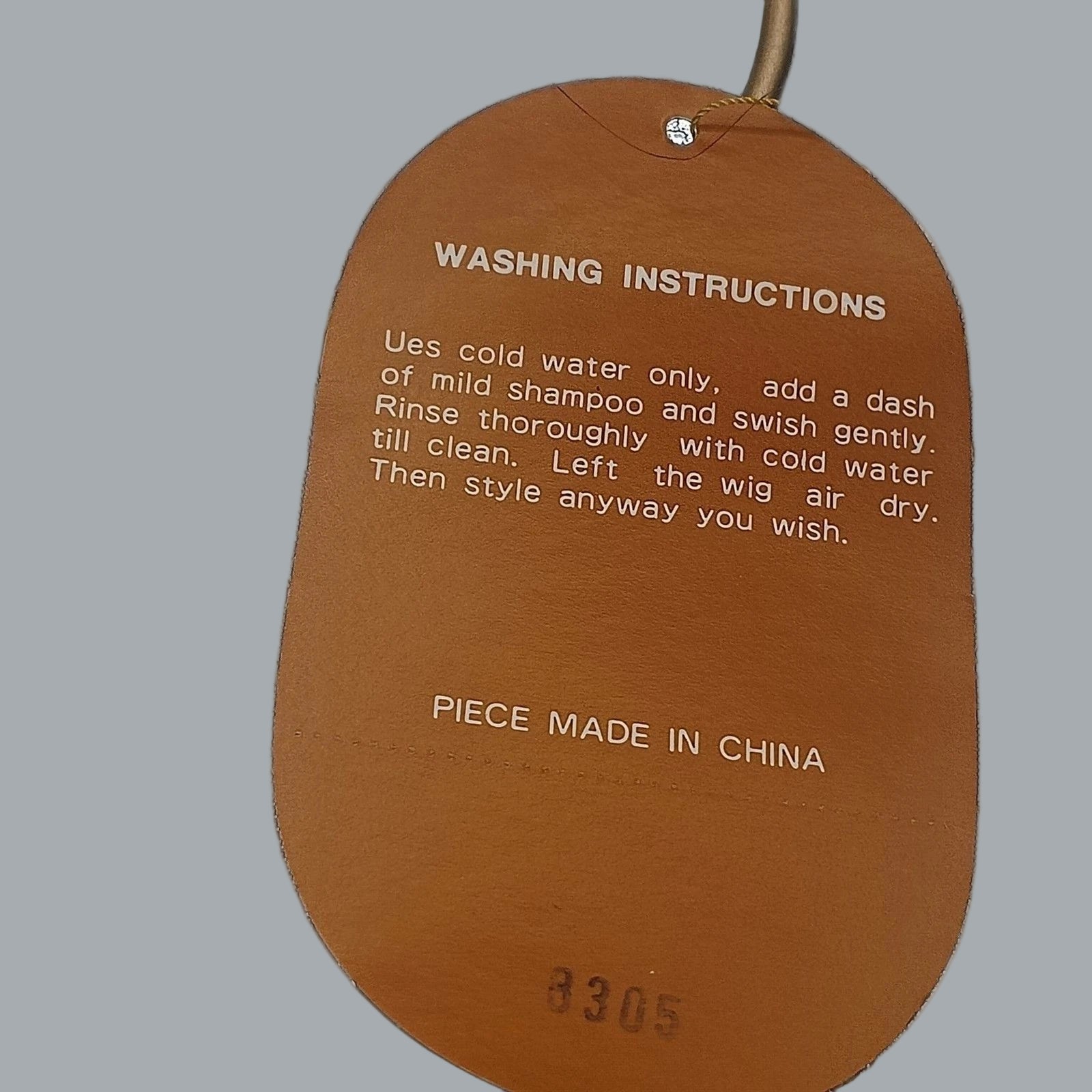 This high-quality, long, brown wig features beautiful ringlet curls and a center skin part. Made with modacrylic fiber, it's designed to fit various doll head sizes and can be washed and restyled. A vintage piece from a company now out of business, it's a desirable item for doll collectors and makers.