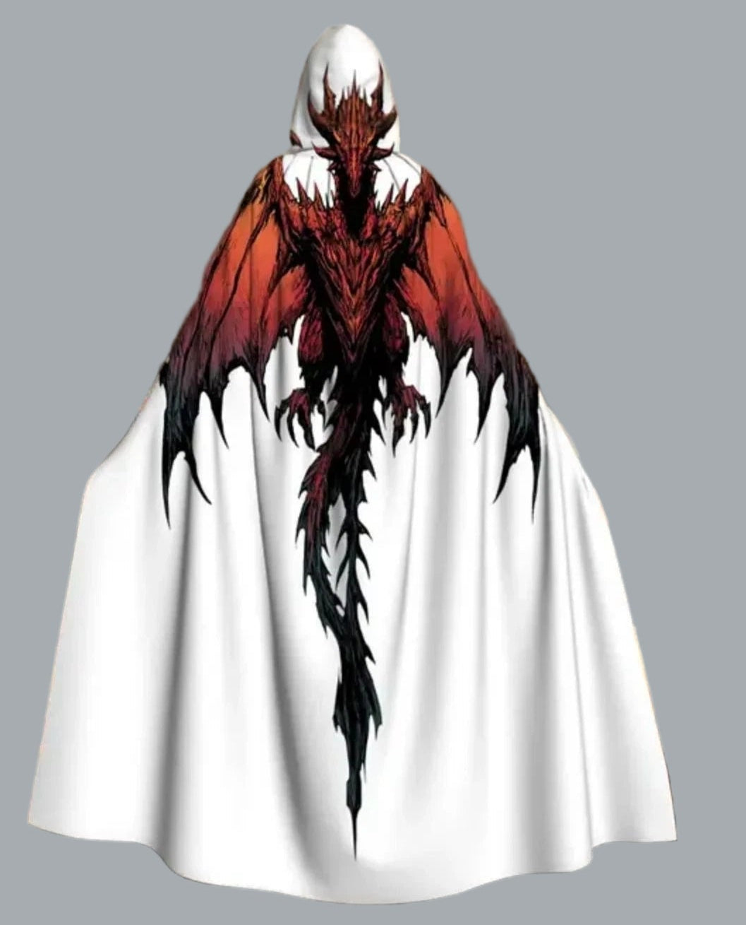Embrace the fantasy with this adjustable hooded cloak featuring a striking red and black dragon design. The soft, lightweight fabric and tie closure ensure a comfortable fit for any adventure, whether it’s for cosplay, Halloween, or a themed party. The full-body print makes a bold statement.