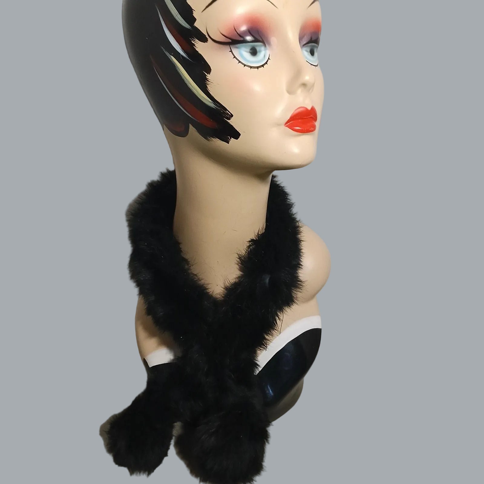 Black Rabbit Fur Keyhole Scarf Spans 2" x 29"