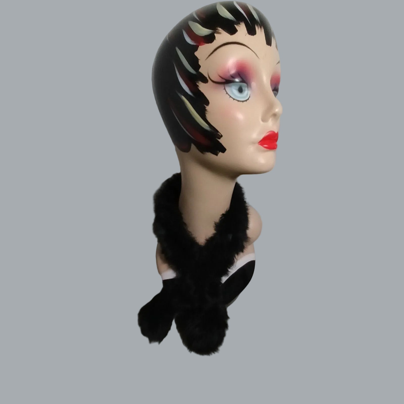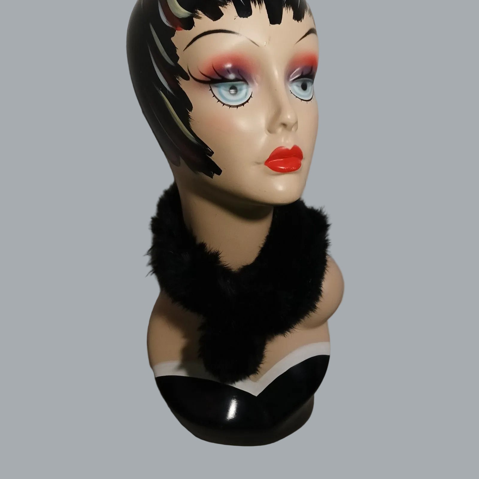 Crafted from premium black rabbit fur, this keyhole scarf spans 2" x 29" and features a distinctive keyhole design that allows for effortless styling without clasps or ties. The natural density and softness of rabbit fur provide exceptional thermal properties while maintaining a refined appearance. Ideal for layering over coats or dresses, this accessory delivers both functional warmth and sophisticated elegance for discerning customers seeking quality fur pieces.