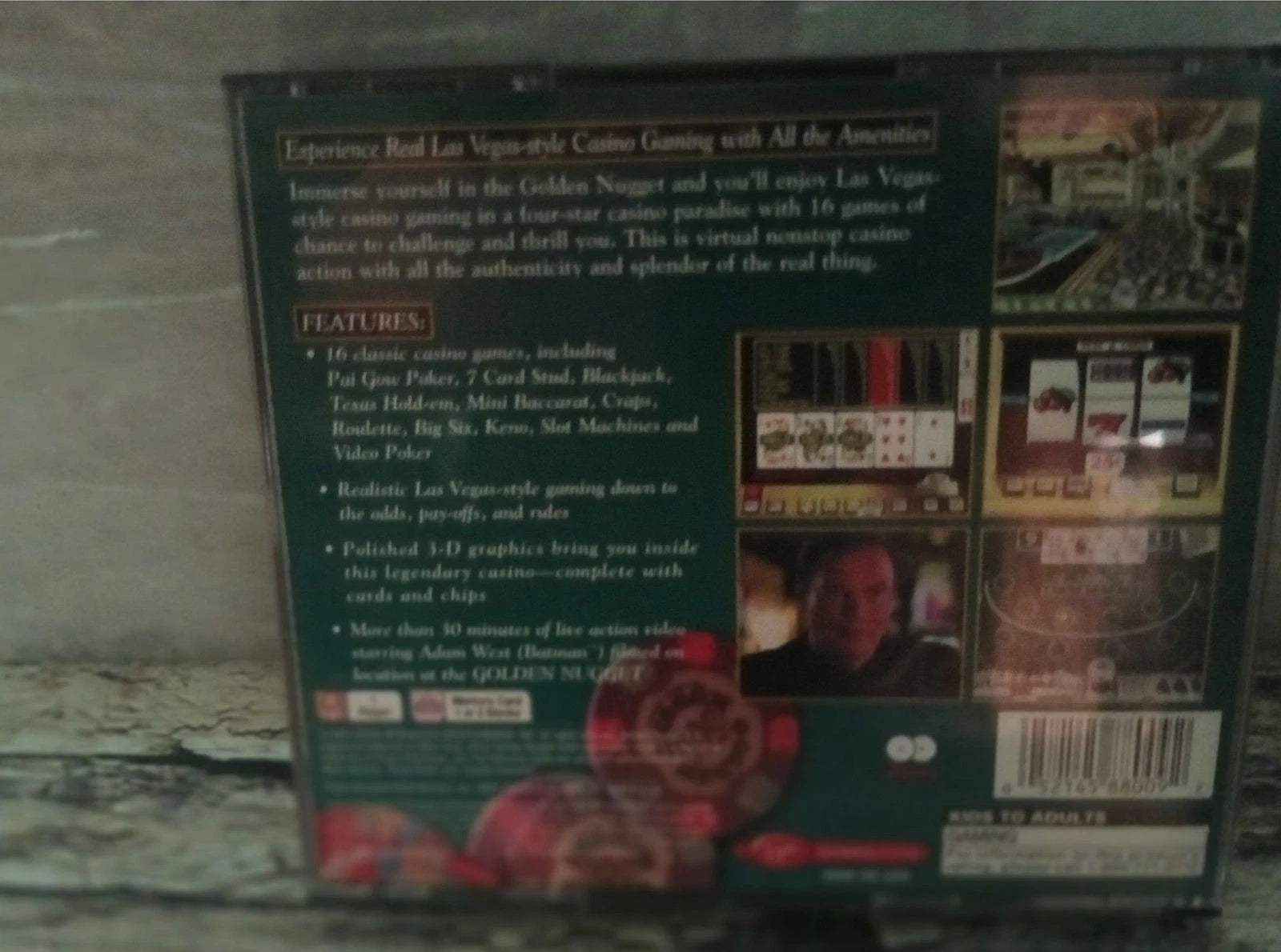 Step into Las Vegas with Golden Nugget for PlayStation 1! Experience classic casino gaming: Blackjack, Poker, Roulette, Slots & more.
