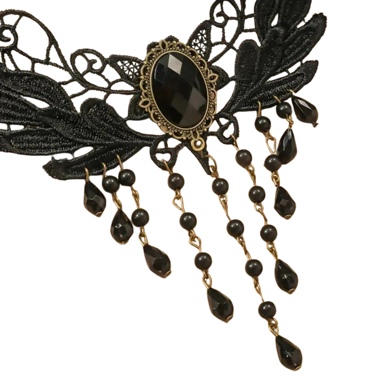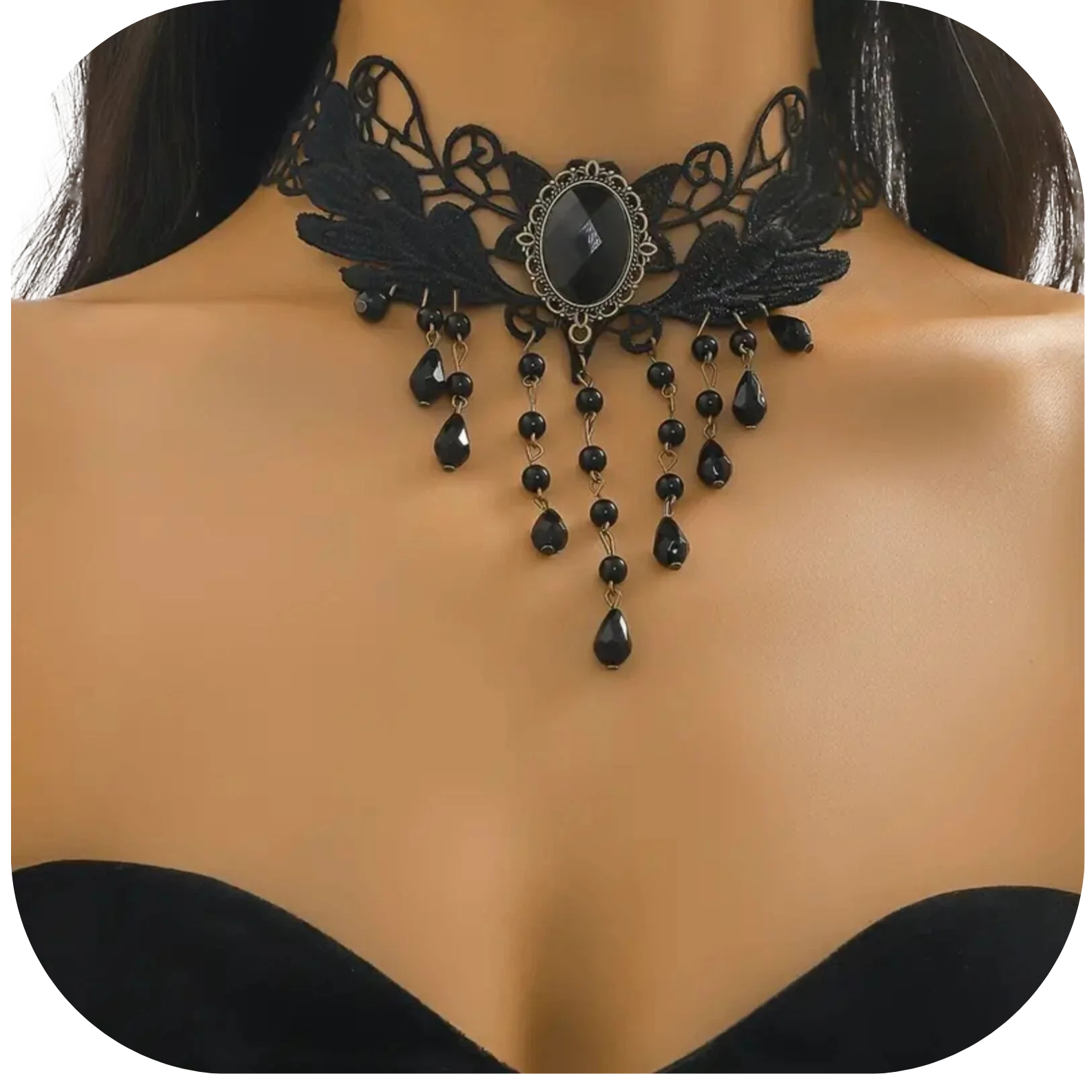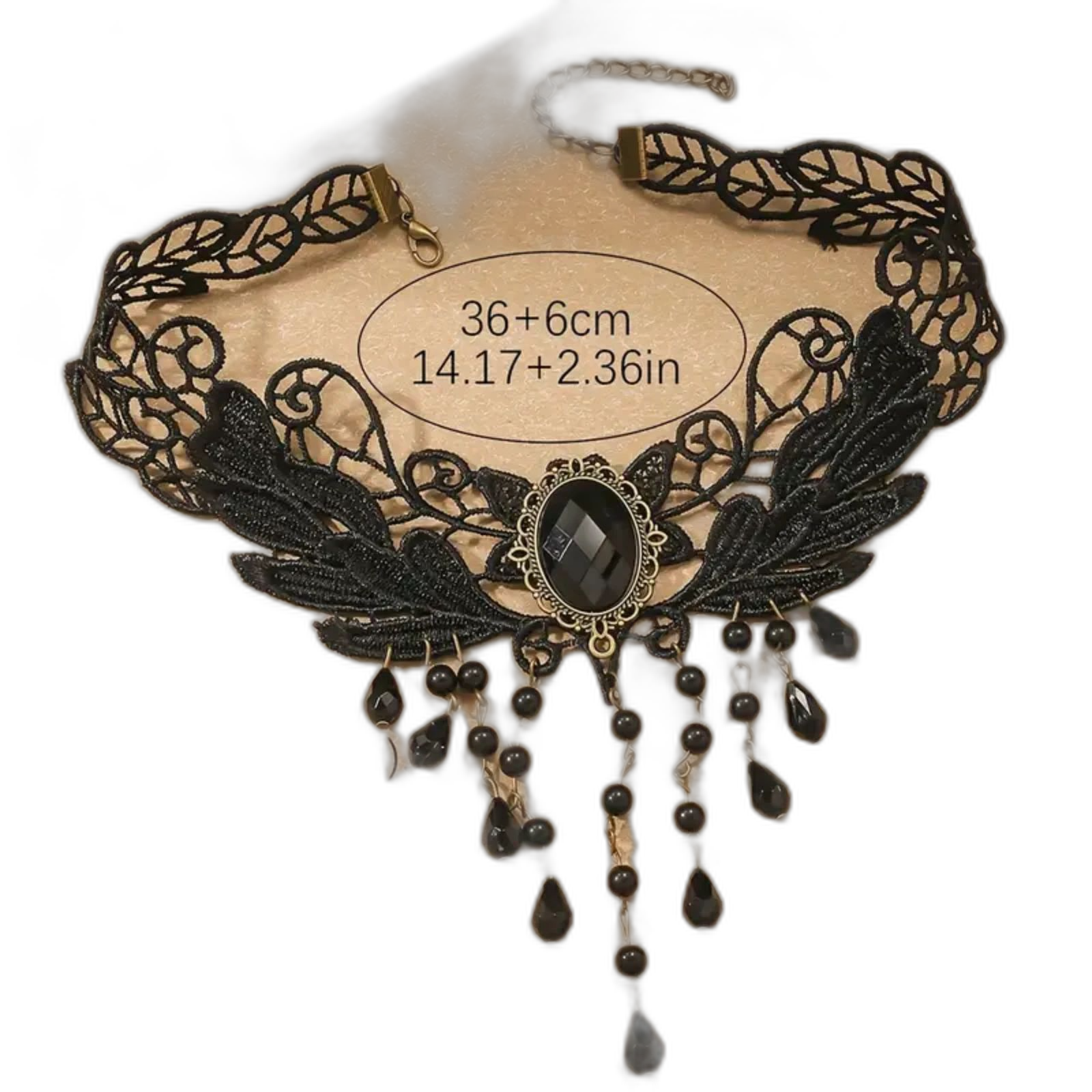 This crystal tassel pendant choker is made of high quality alloy and soft lace