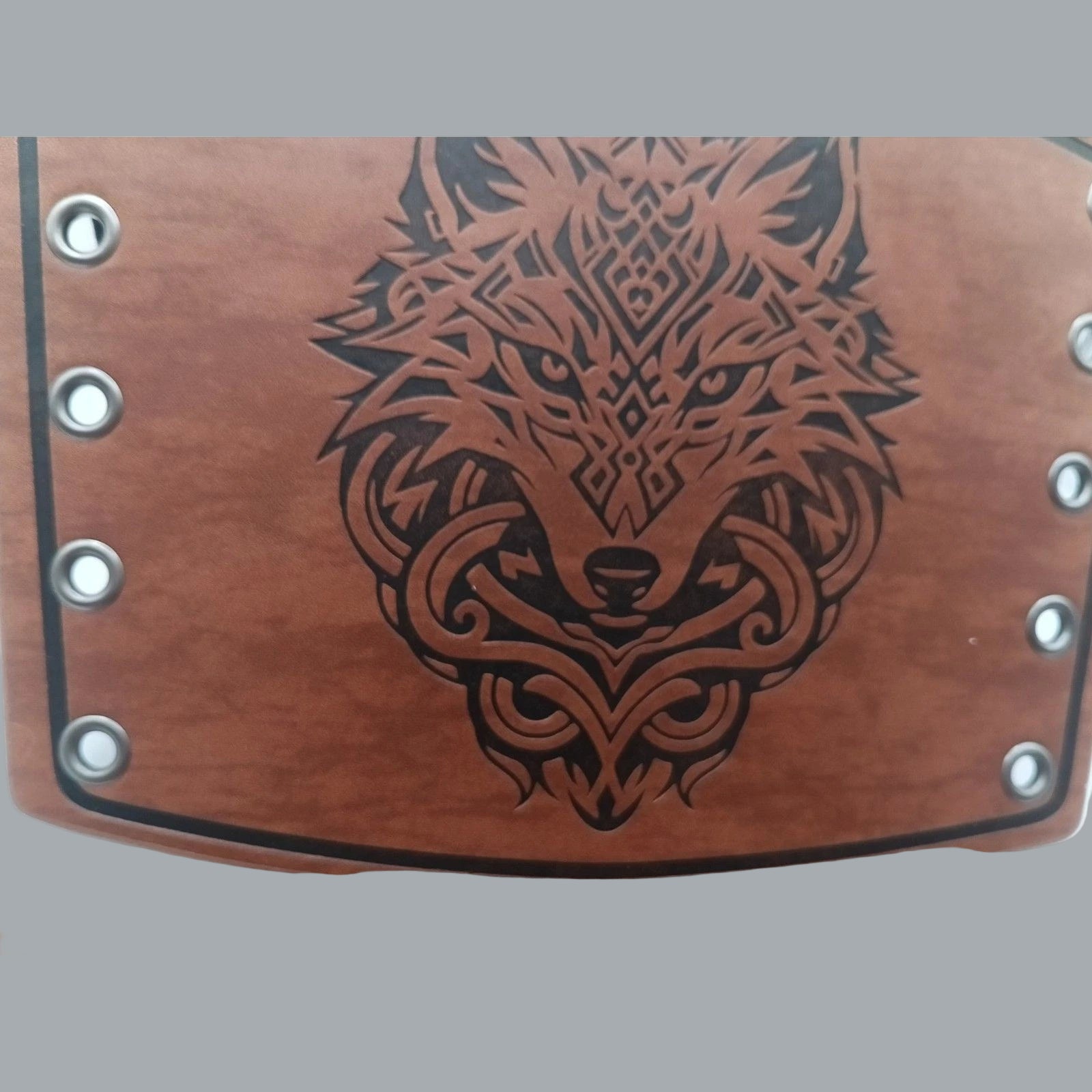 Gothic Wolf Faux Leather Brown Arm Bracers (Pair) For Renaissance Faire