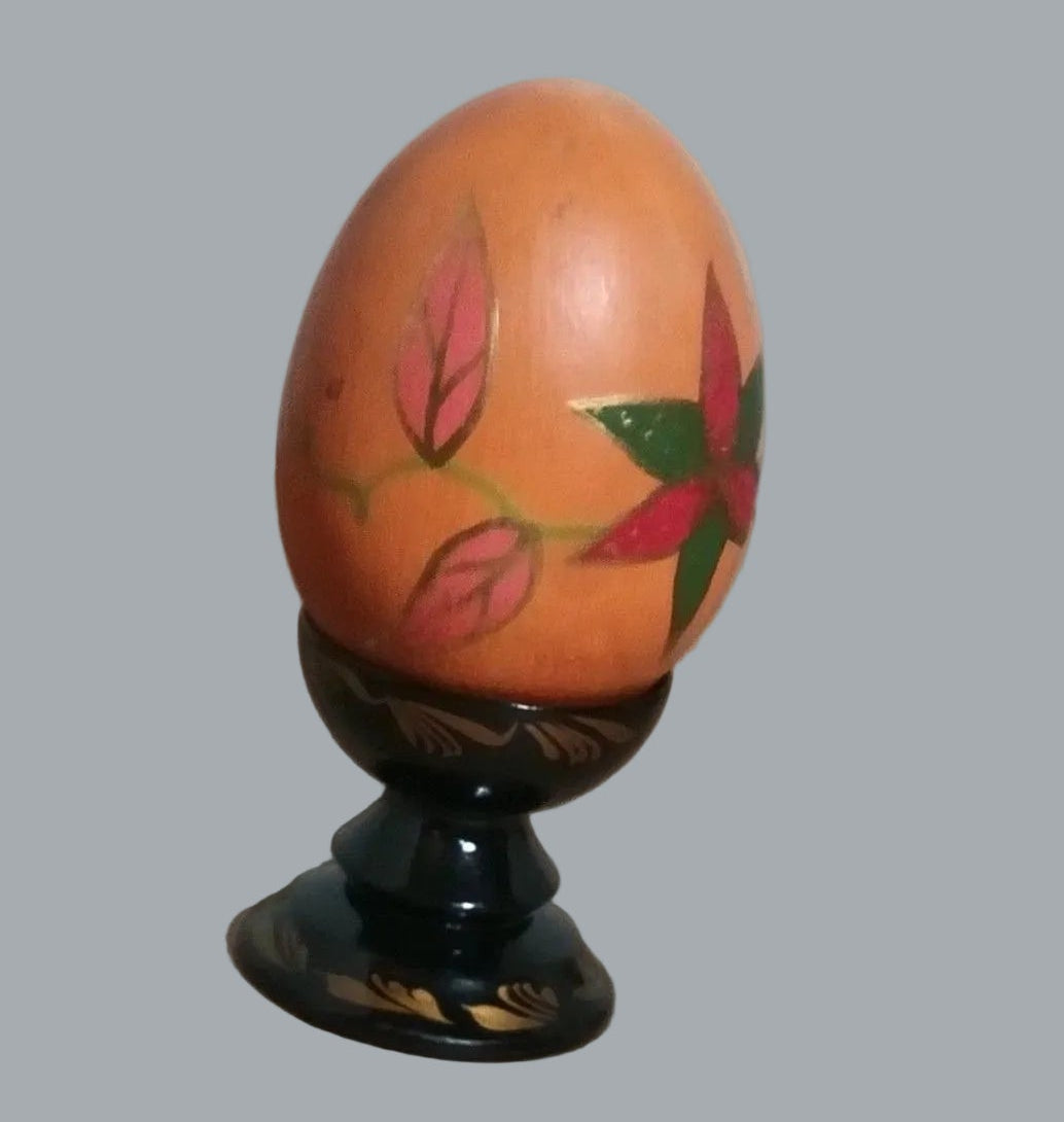 Handcrafted Ukraine Painted Wooden Egg Set w/ Stand 4pc 2.5-1.5in