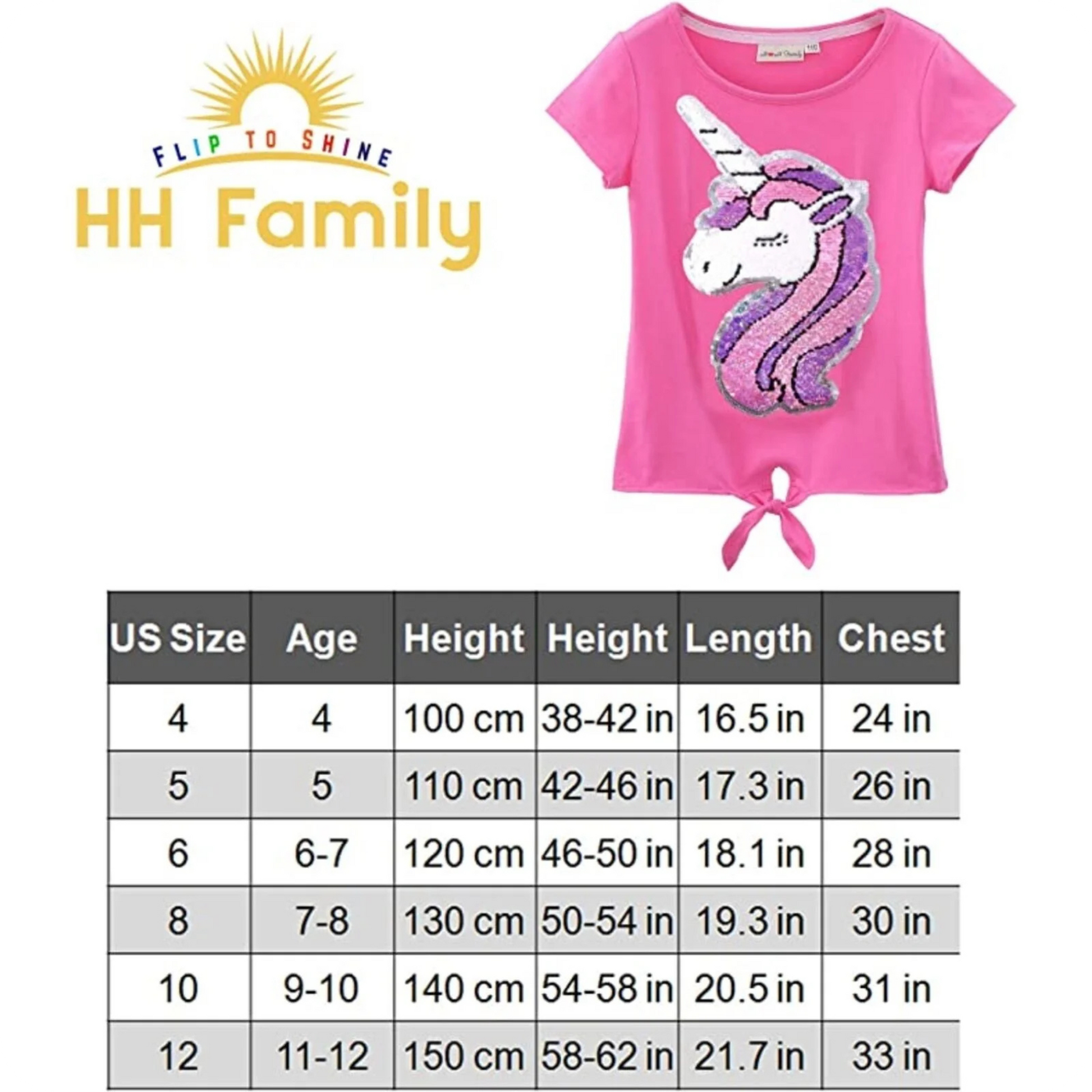 HH Family Flip Sequin Unicorn Shirt Tee for Girls 4 Long Pretty Shirt