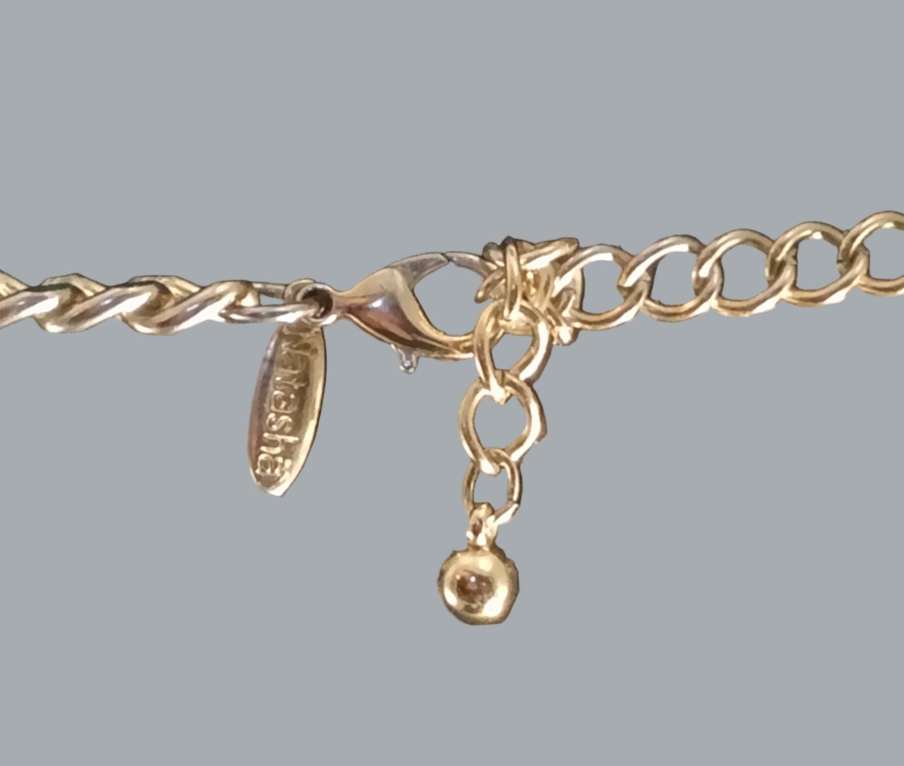 Chain: Adjustable gold-tone link chain (approx. 16–19.5")