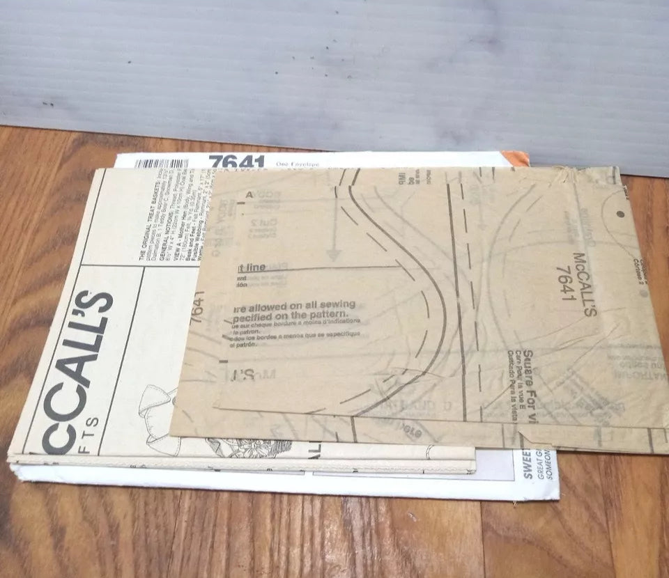 McCall's #7641 Gift Baskets pattern from 1995 offers a charming collection of uncut designs for creating delightful fabric baskets. This versatile pattern includes instructions for crafting an array of themed baskets, including a hen, snowman, lion, bear, Dalmatian, Santa, and Mrs. Claus. Each character basket is designed to add a touch of whimsy to your home decor or holiday celebrations. Perfect for gift-giving, these fabric baskets are ideal for holding treats, trinkets, or festive goodies. The uncut pattern ensures you have all the templates and instructions needed to bring these enchanting designs to life. Whether for personal use or as handmade gifts, McCall's #7641 Gift Baskets pattern is a delightful addition to any sewing enthusiast's collection.