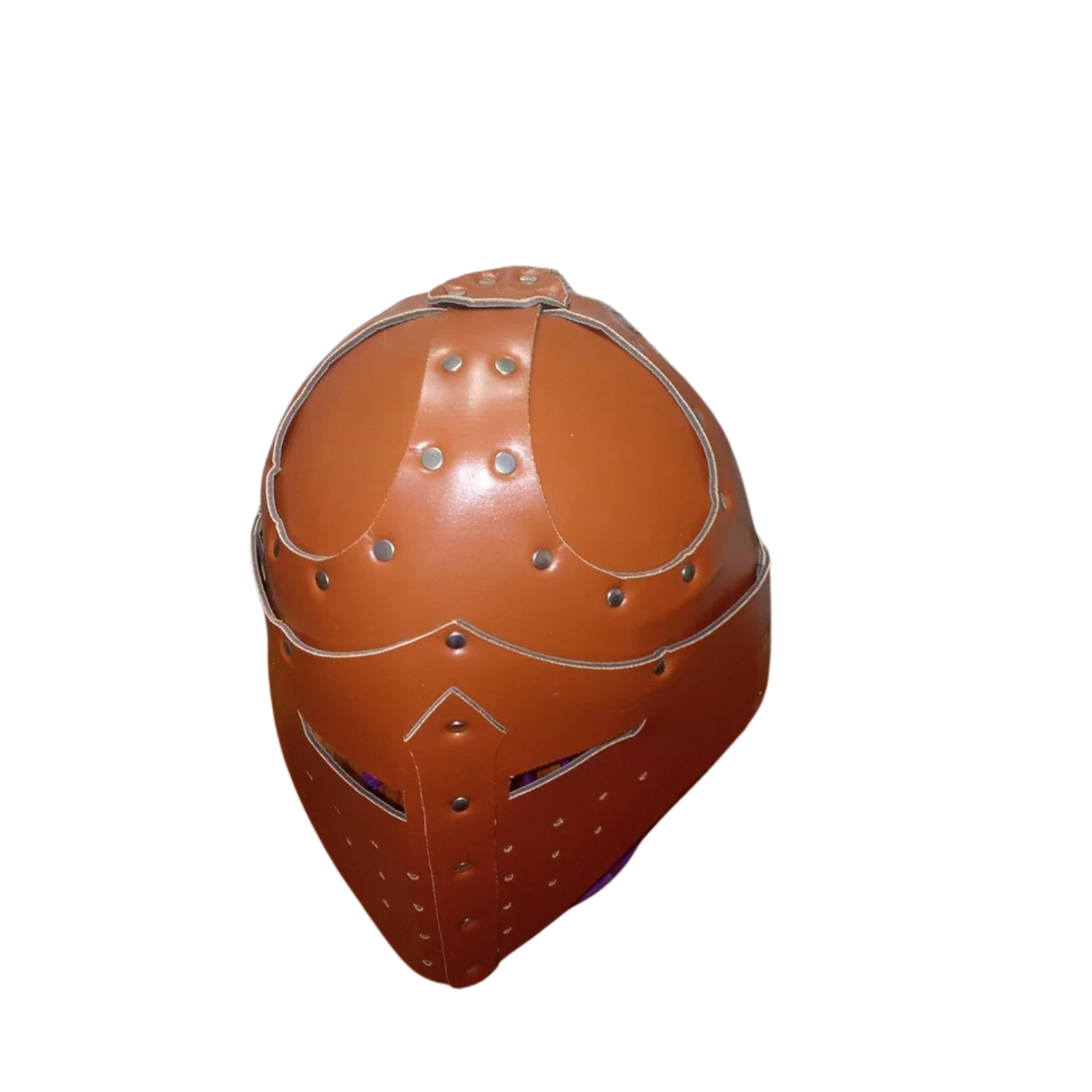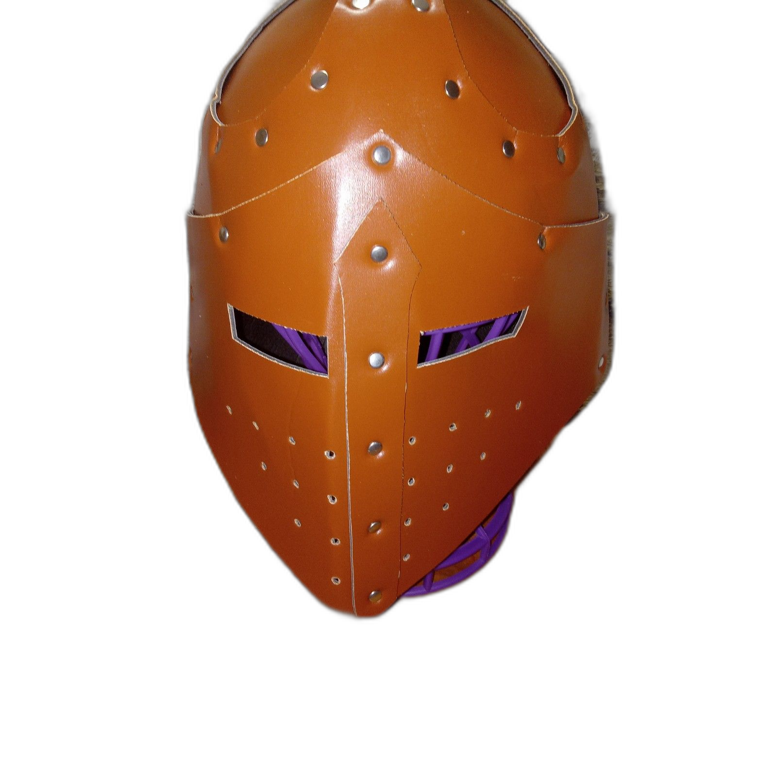 Step into a world of adventure with this Medieval Knight Templar Crusader Helmet, perfect for Viking, pirate, and warrior cosplay. Crafted from premium brown vegan leather, this helmet serves as a striking mask and head armor, making it ideal for Renaissance fairs, LARP (Live Action Role-Playing) events, and historical reenactments. Its one-size-fits-most design ensures a comfortable and secure fit for various head sizes. Whether you're portraying a gallant knight, a fierce Viking, or a daring pirate, this helmet adds an authentic and powerful touch to your costume. Embrace your inner warrior with this versatile and cruelty-free cosplay accessory.