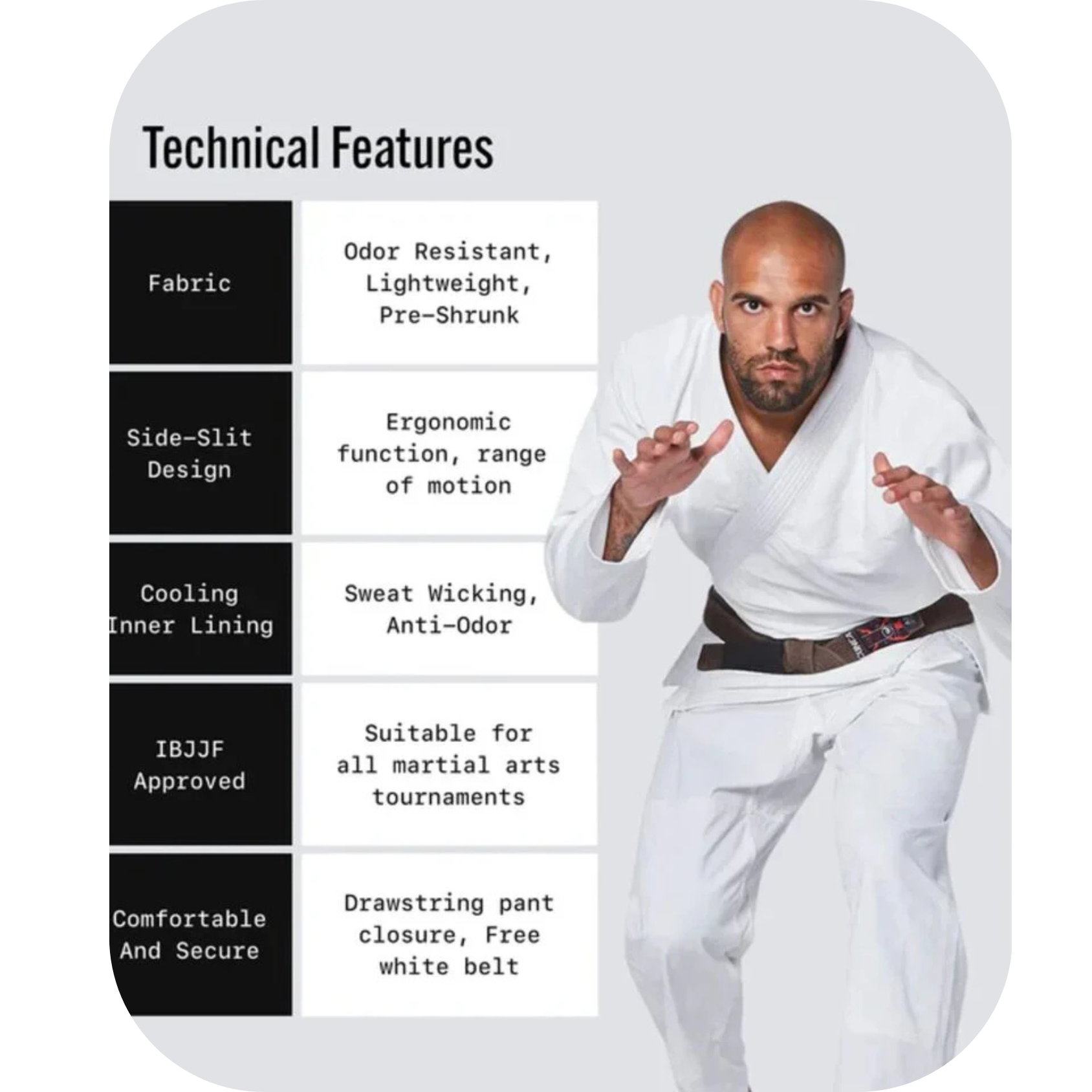 Jiu Jitsu Complete GI includes free white belt if you’re just starting out. Available in different sizes and colors.