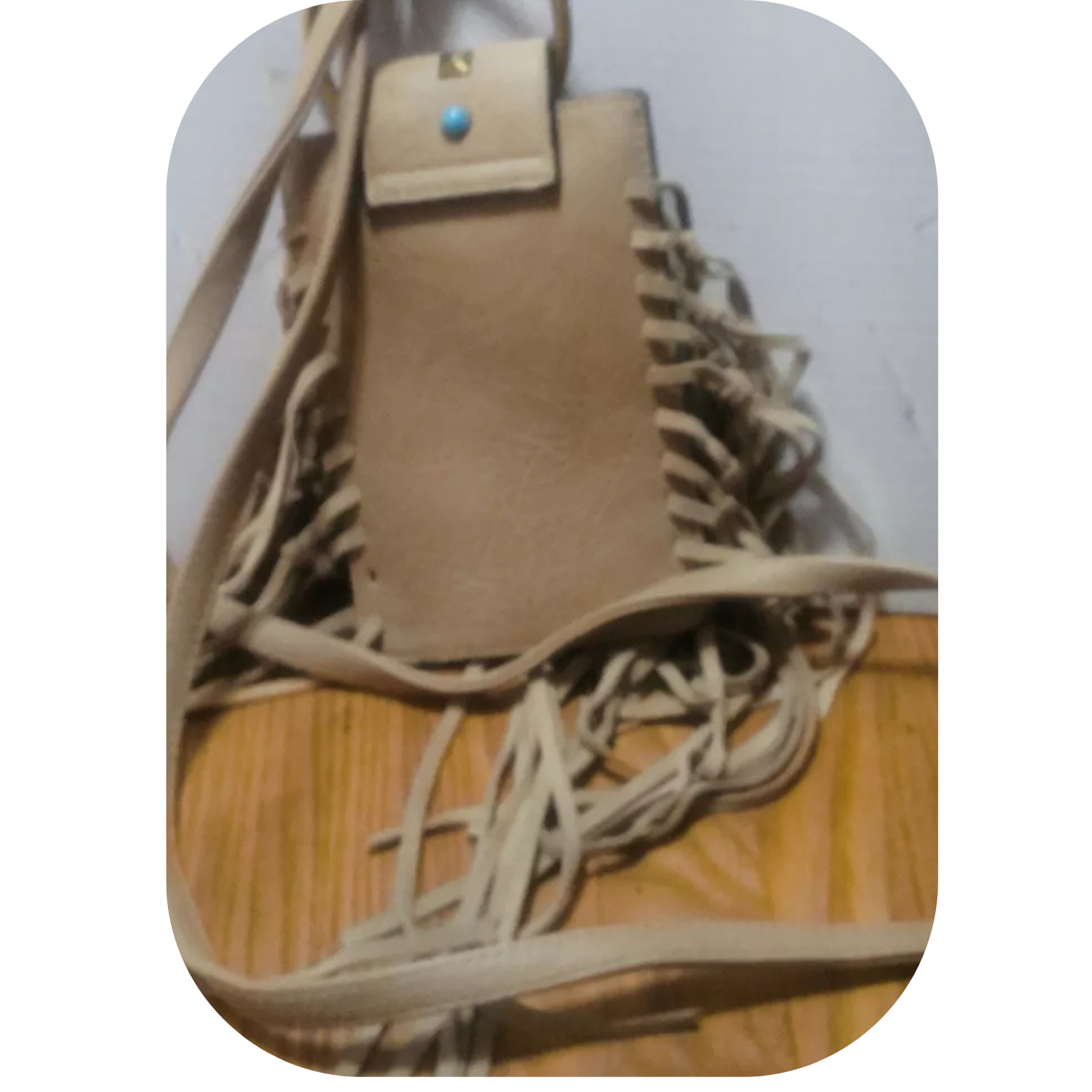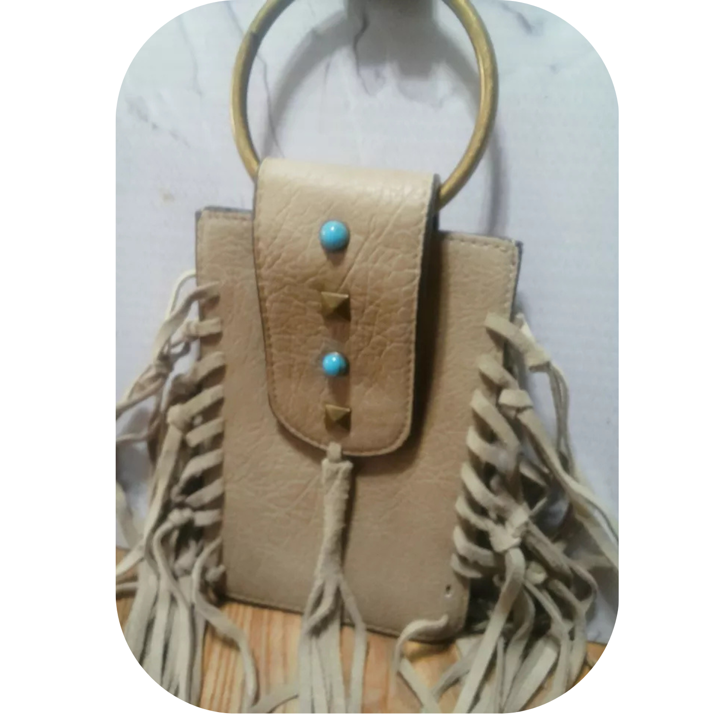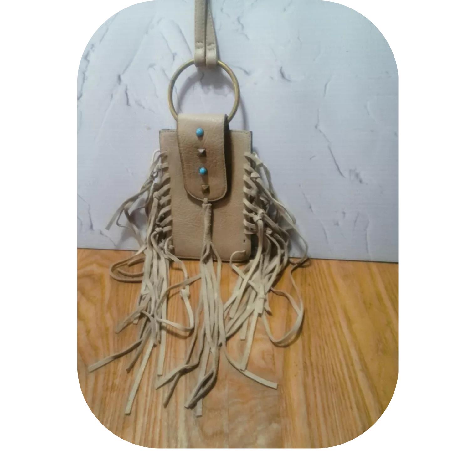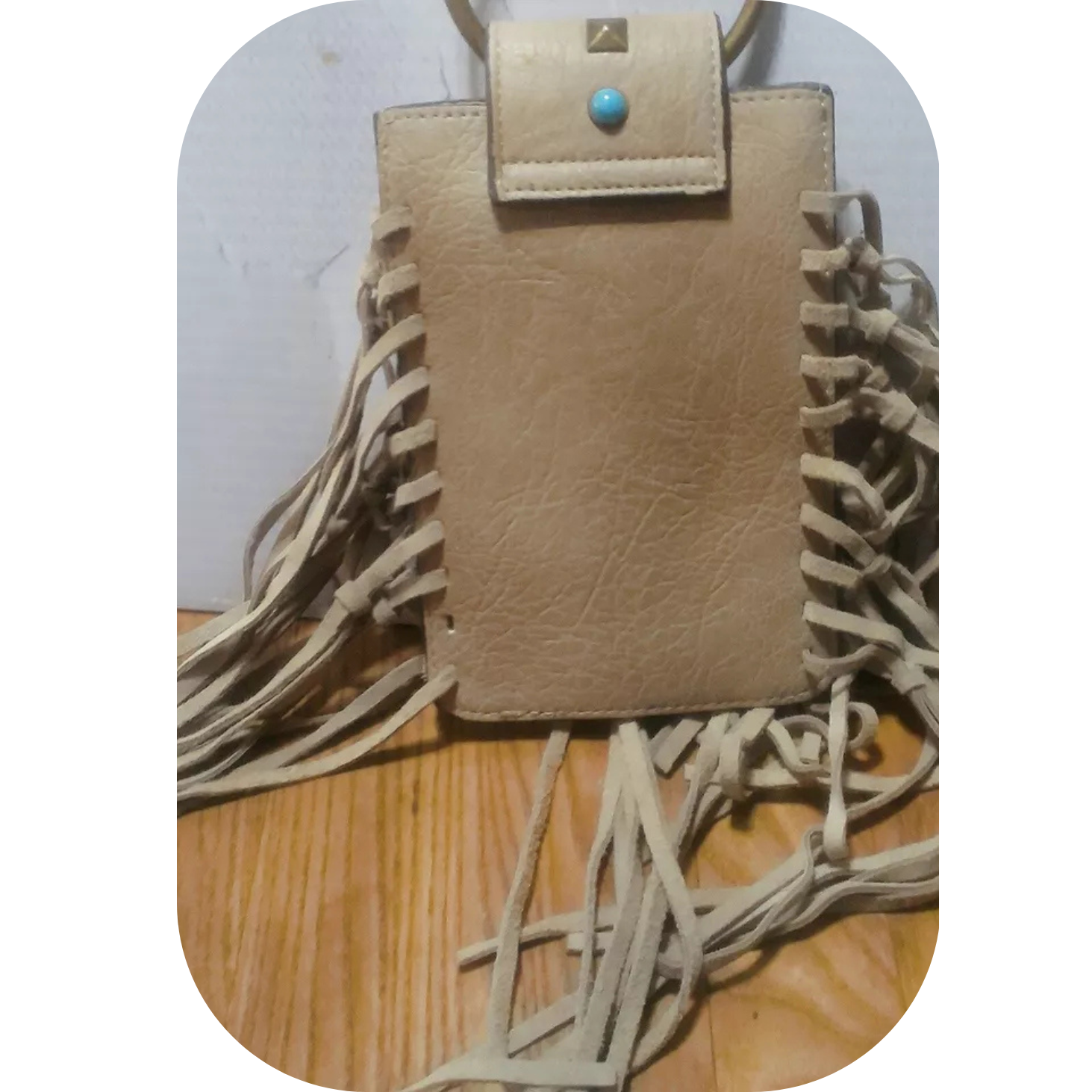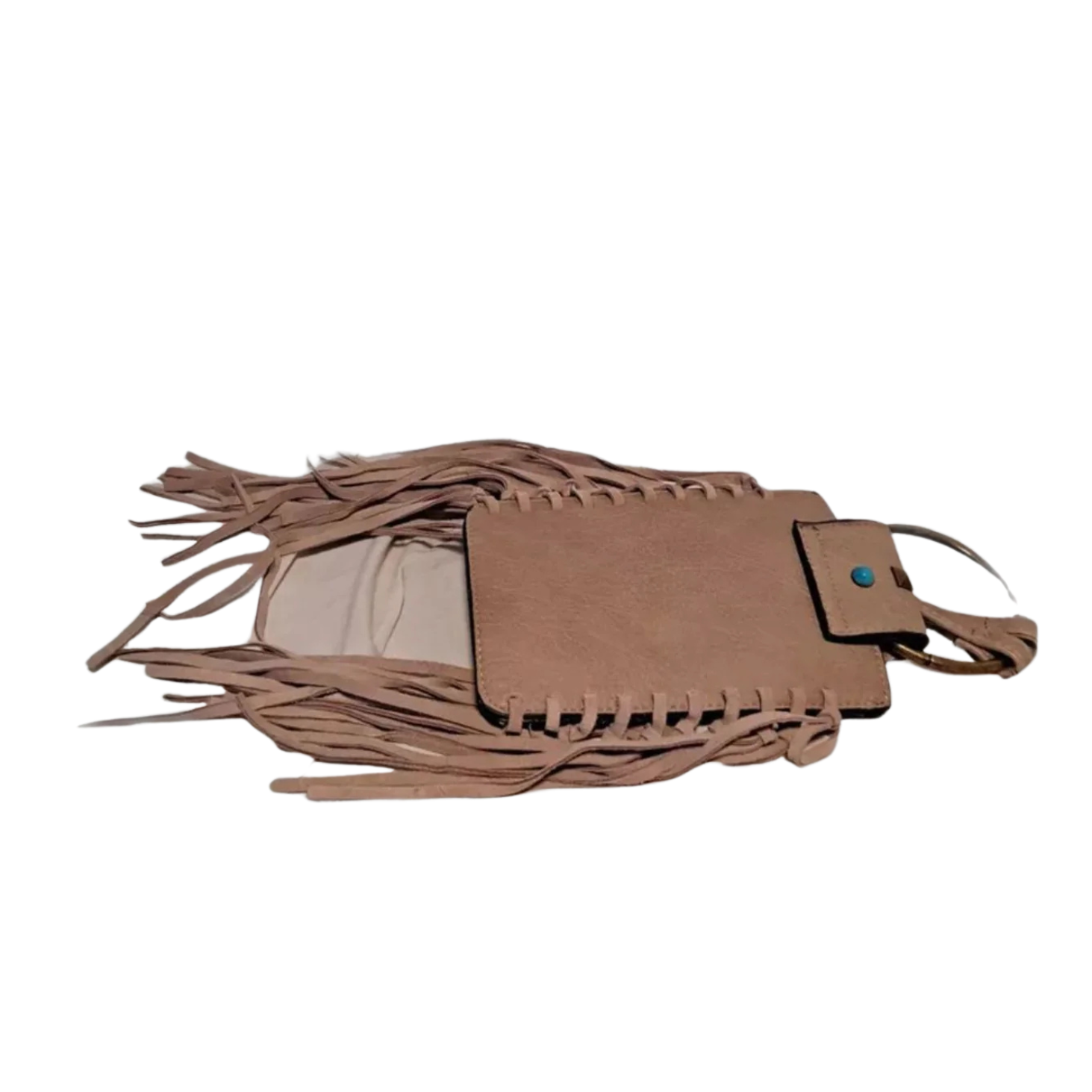 MUDD Tan Fringe Crossbody Phone Bag Boho Western Faux Turquoise Pre-owned