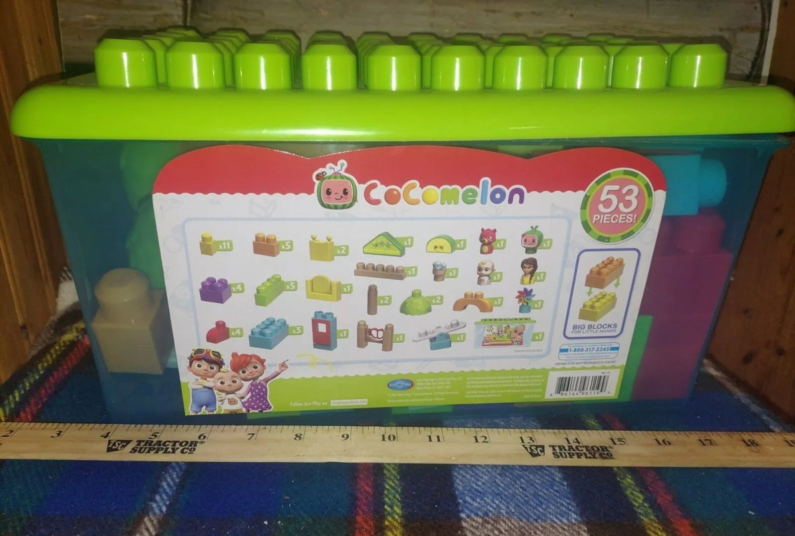 The CoComelon Melon Patch Academy is a 53-piece block set designed to inspire creativity and learning in young children. Based on the popular educational YouTube and Netflix series, CoComelon, this set includes six themed figures, including JJ, and brightly colored large blocks perfect for small hands. The set encourages imaginative play and helps develop fine motor skills, color recognition, and pattern identification. The blocks can be used to build structures, such as the Melon Patch Academy, with fun accessories like trees, fences, and a seesaw. A reusable storage bin with a lid doubles as a play platform. Ideal for children ages 18 months and up, it strengthens parent-child bonds while fostering social and cognitive skills through hands-on, engaging play.