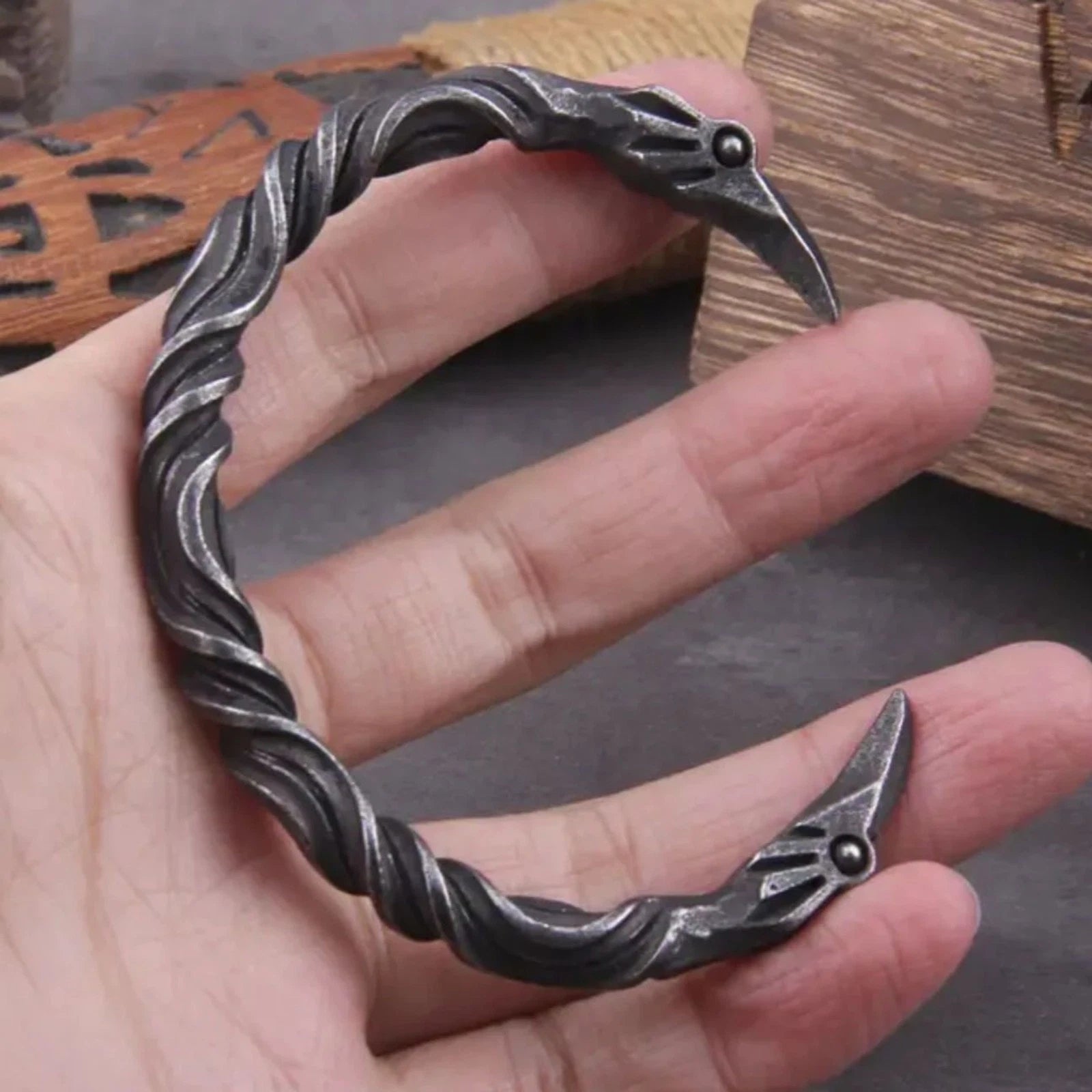 Raven Head Viking Torc Bracelet