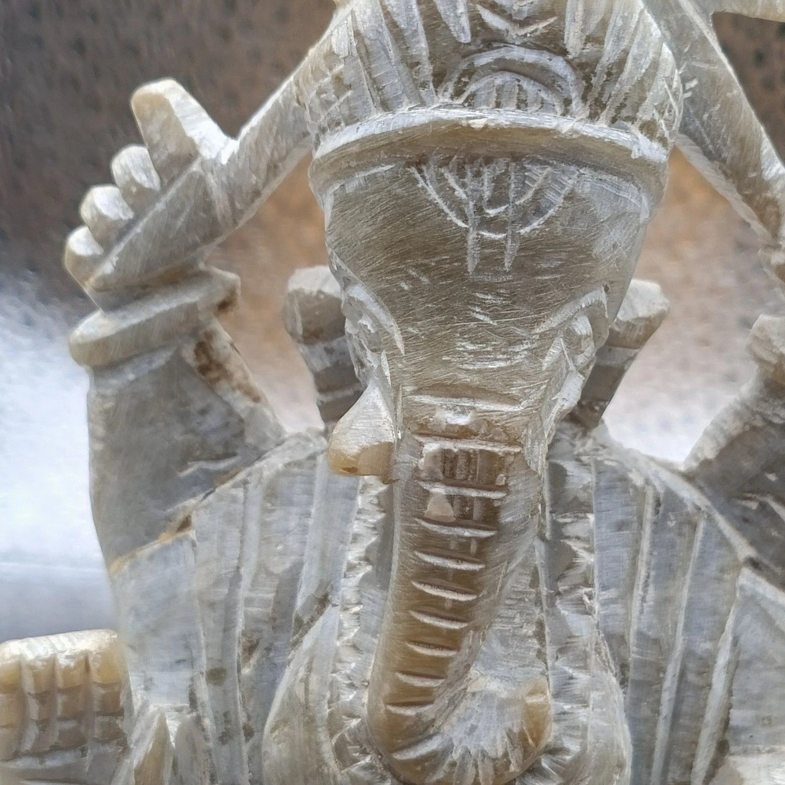 Hand-carved Ganesh figure in olive green soapstone