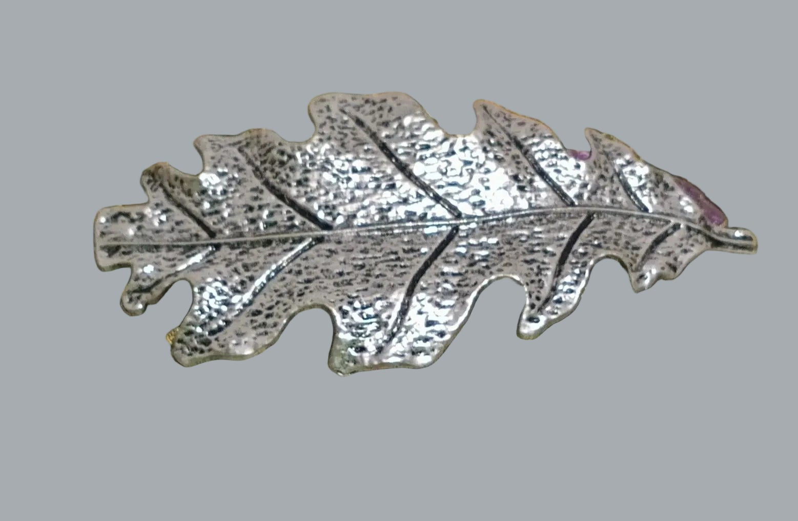 Silver Tone Oak Leaf Barrette Hammered Textured Hair Clip 3.5in