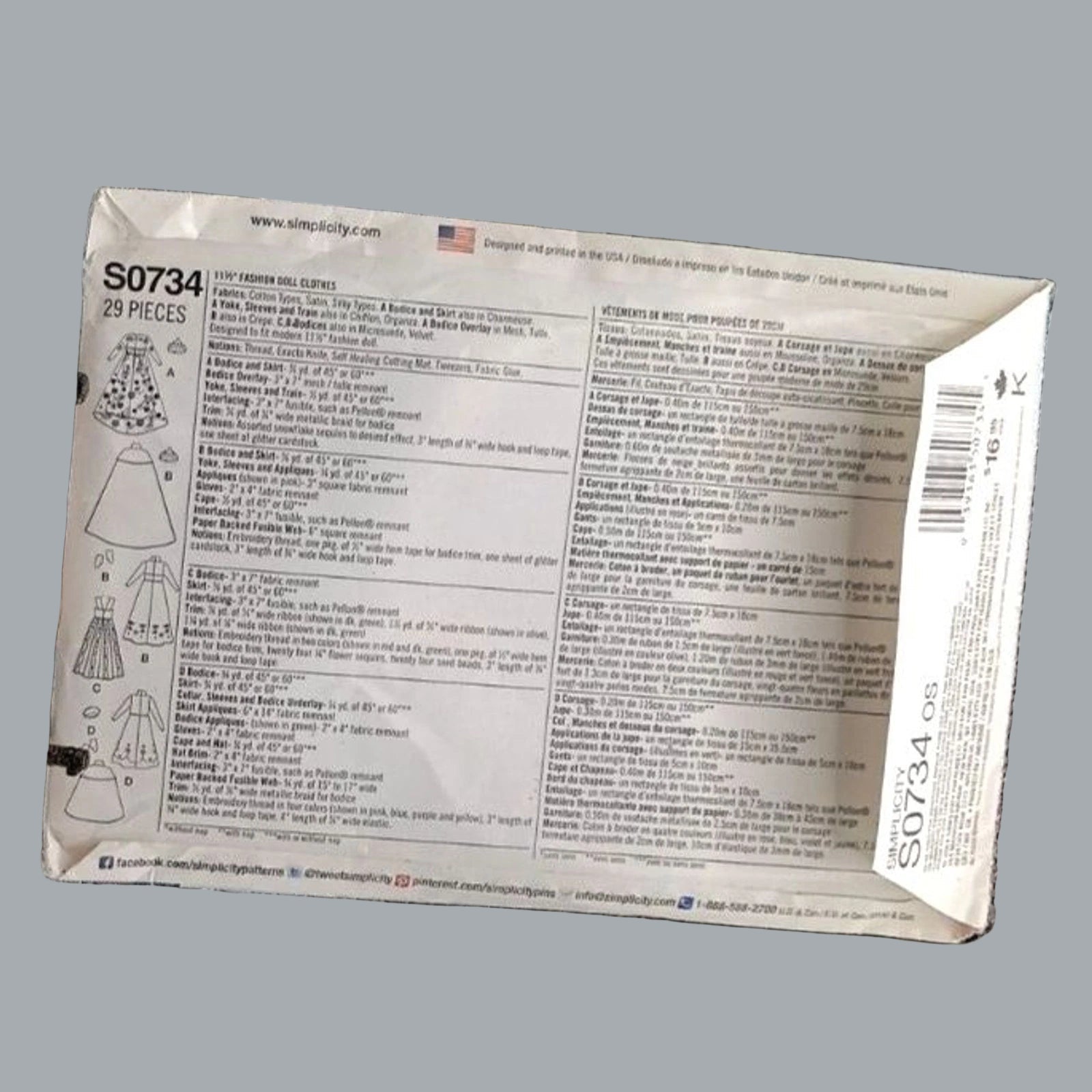 Simplicity S0734 Sewing Pattern: Craft beautiful 11.5" doll clothes inspired by Disney's Frozen.